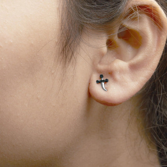 .925 Sterling Silver Black Diamond Solitaire Stud Earrings (Black Color, I2-I3 Clarity)