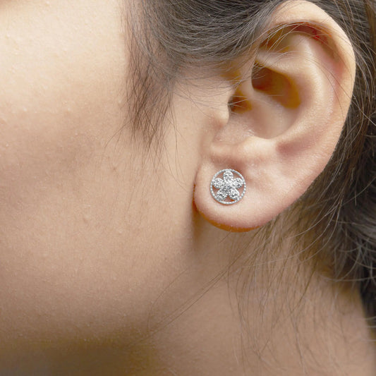 .925 Sterling Silver Diamond Accent Star and Wheel Milgrain Style Stud Earrings (I-J Color, I2-I3 Clarity)