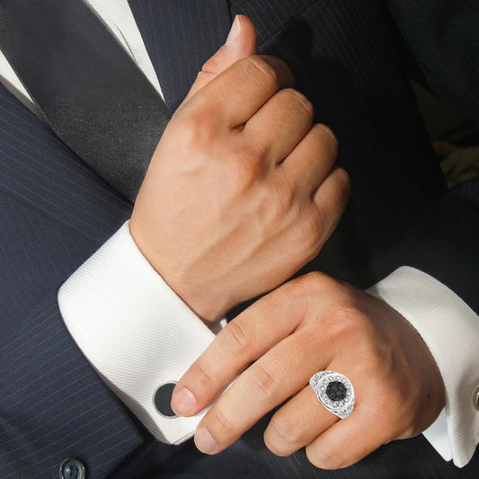 .925 Sterling Silver 1/4 Cttw White and Black Treated Diamond Halo Cluster Ring for Men (I-J Color, I3 Clarity)