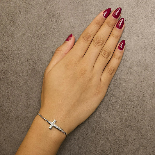 .925 Sterling Silver Diamond Accent Cross Bolo Bracelet (I-J Color, I1-I2 Clarity) - 7"