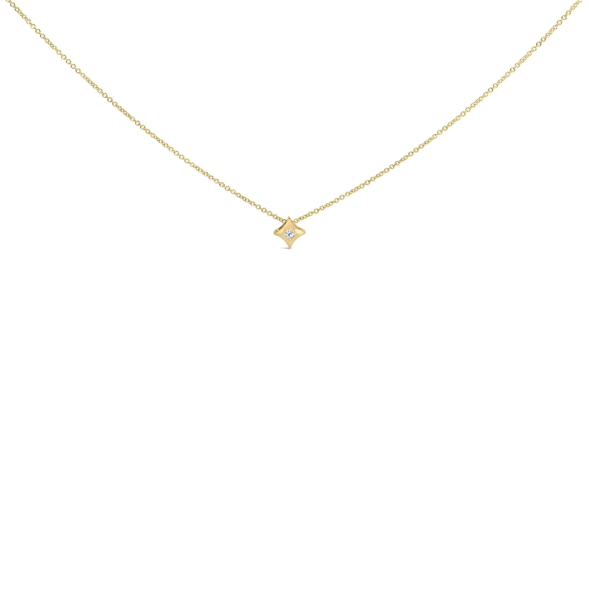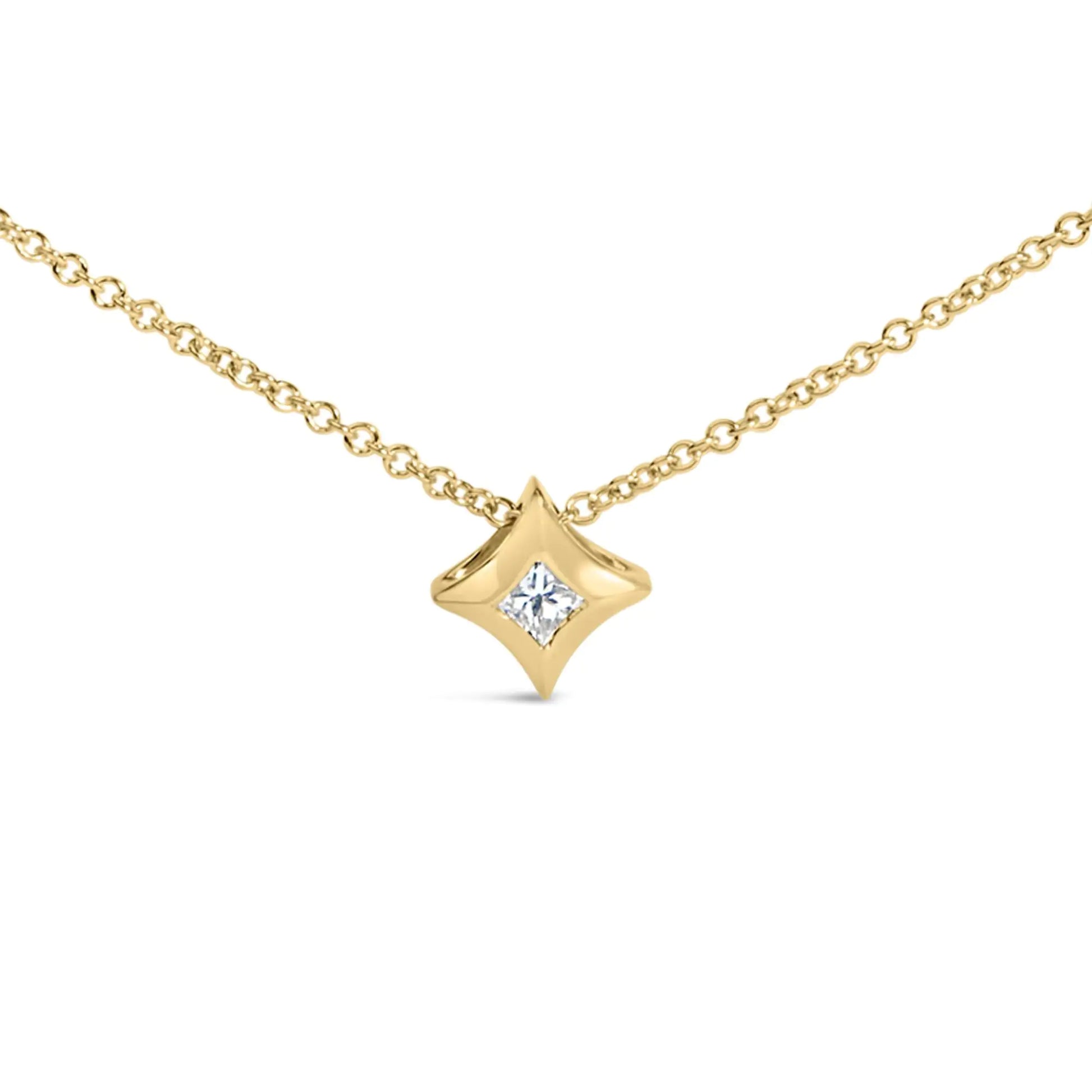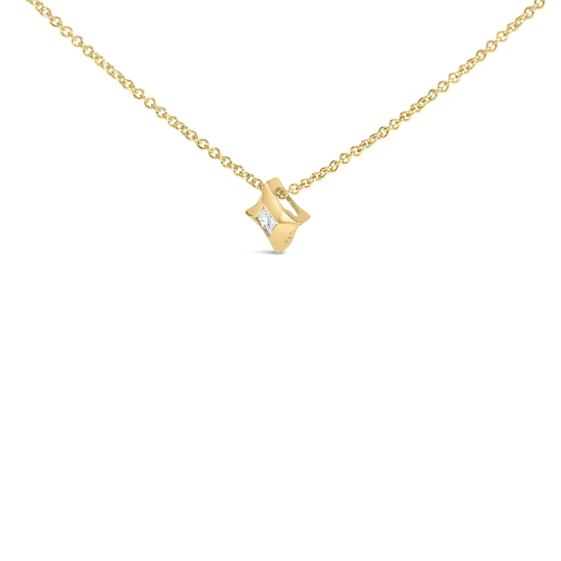 10K Gold 1/10 Cttw Bezel Set Solitaire Princess Cut Diamond Kite Shaped Pendent Necklace - 18" Inches