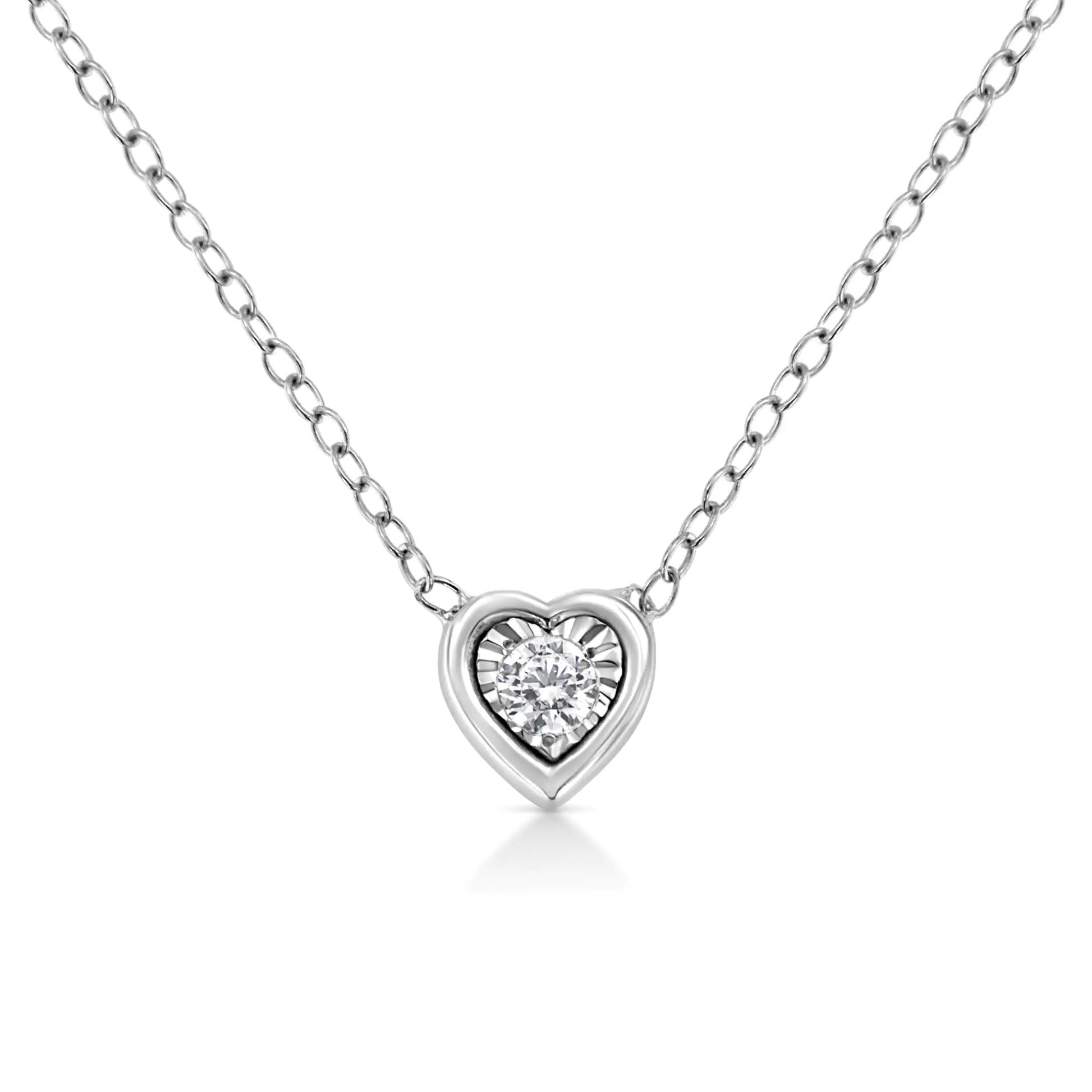 10K White Gold 1/10 Cttw Miracle Set Round-Cut Diamond 18" Pendant Necklace - Choice of Shape