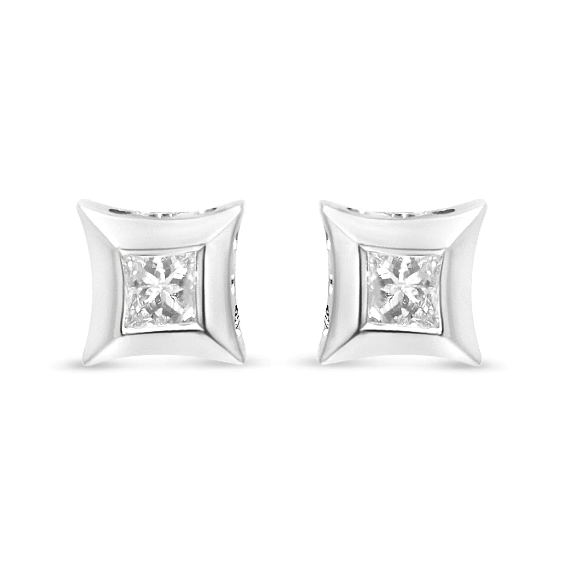 10K White Gold 1/3 Cttw Invisible Set Style Princess-Cut Diamond Stud Earrings (H-I Color, SI2-I1 Clarity)