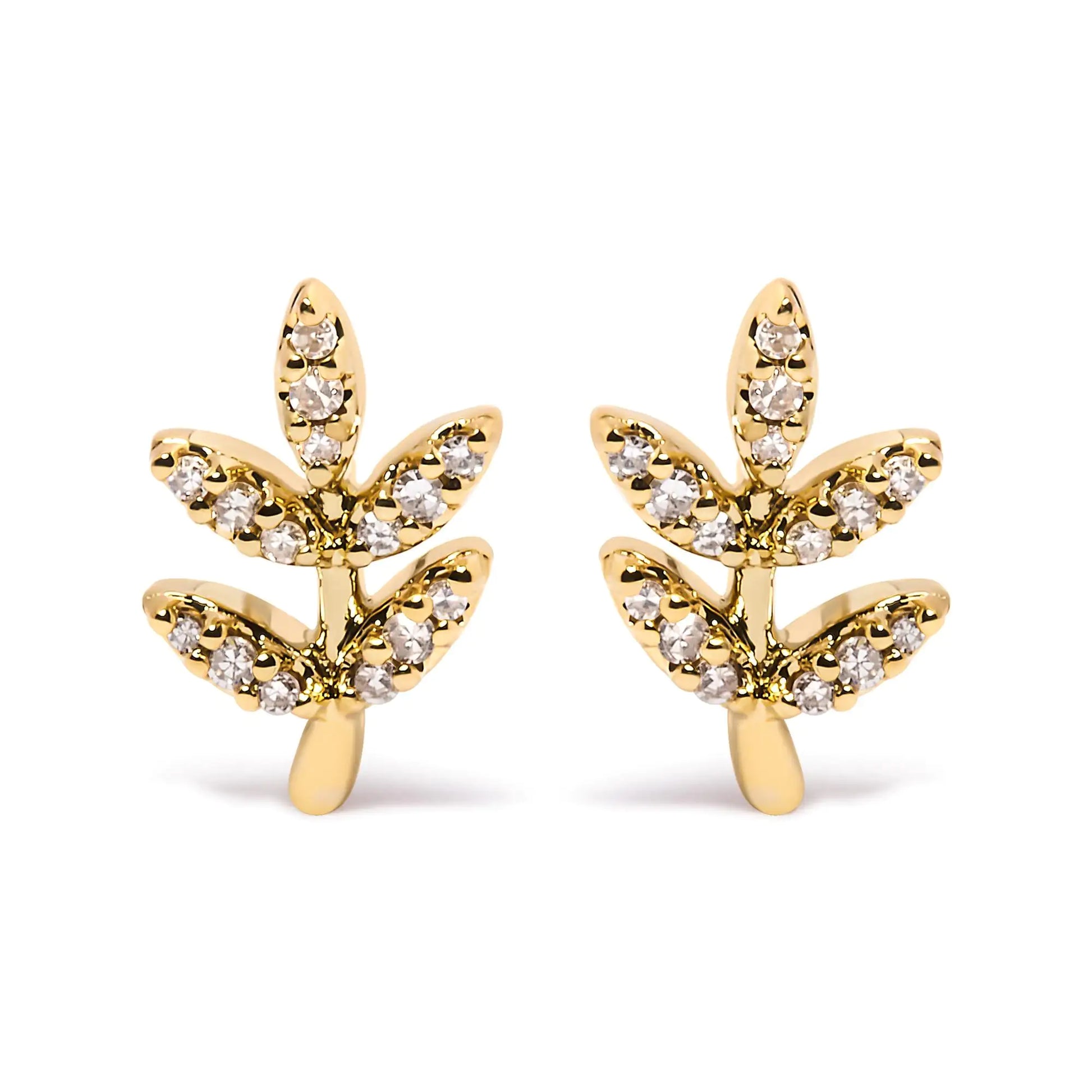 10K Yellow Gold 1/10 Cttw Diamond Accented Leaf and Branch Stud Earrings (H-I Color, I1-I2 Clarity)
