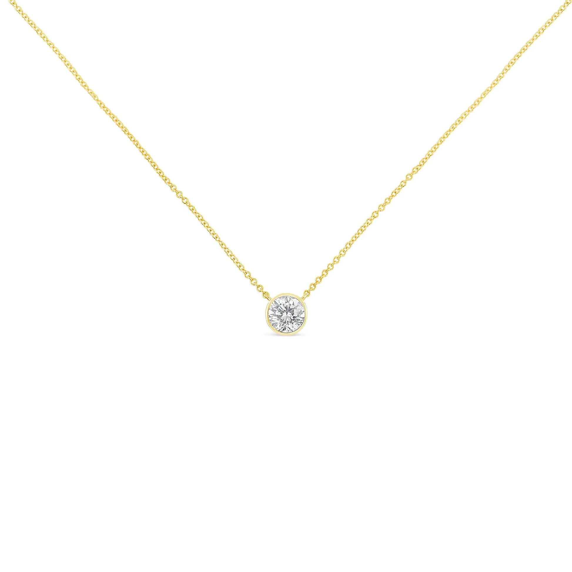 10K Yellow Gold 1/5 Carat Round Brilliant-Cut Diamond Modern Bezel-Set Solitaire 16"-18" Pendant Necklace (H-I Color, SI2-I1 Clarity)