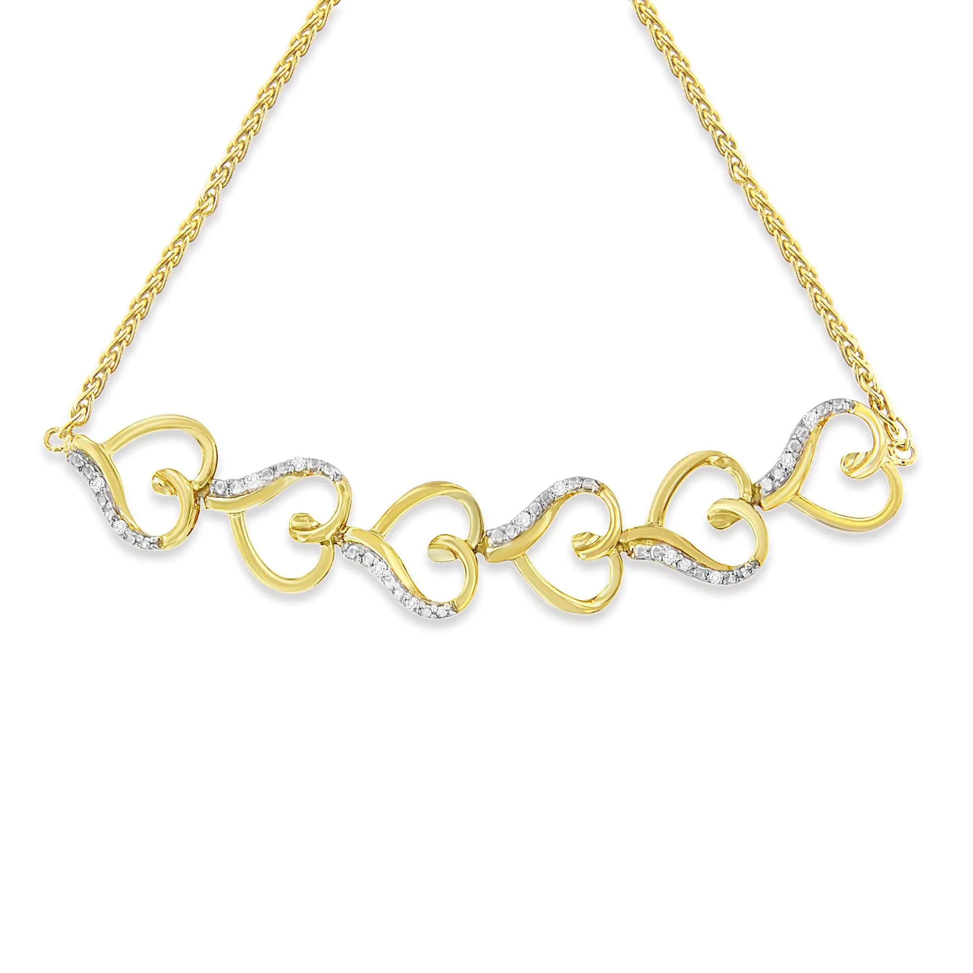 10K Yellow Gold over .925 Sterling Silver Diamond Accented Open Hearts 6”-9” Adjustable Chain Bolo Bracelet (H-I Color, I2-I3 Clarity)