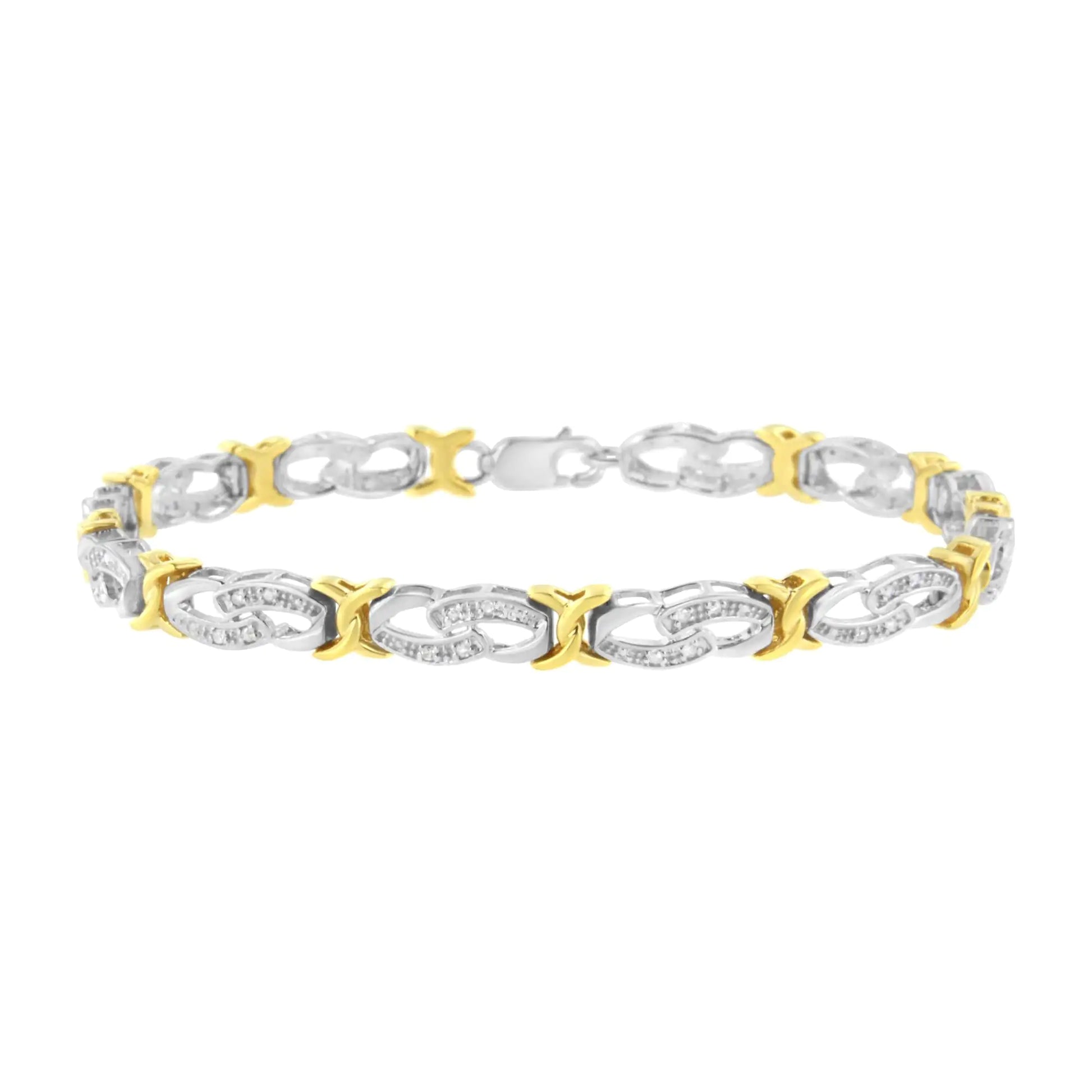 10k Yellow Gold Plated Sterling Silver 1/4 cttw Diamond Infinity and X Link Bracelet (I-J Clarity, I2-I3 Color) - Size 7.25"