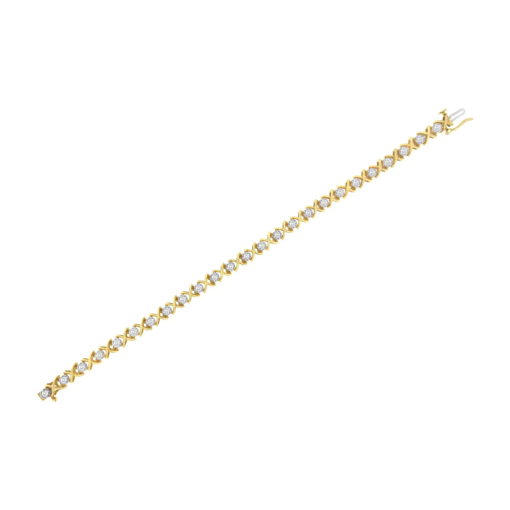 💛 Delicately crafted 10K yellow gold plated sterling silver "X" links alternate with 1ct TDW of diamonds along this stunning bracelet design. 🌟