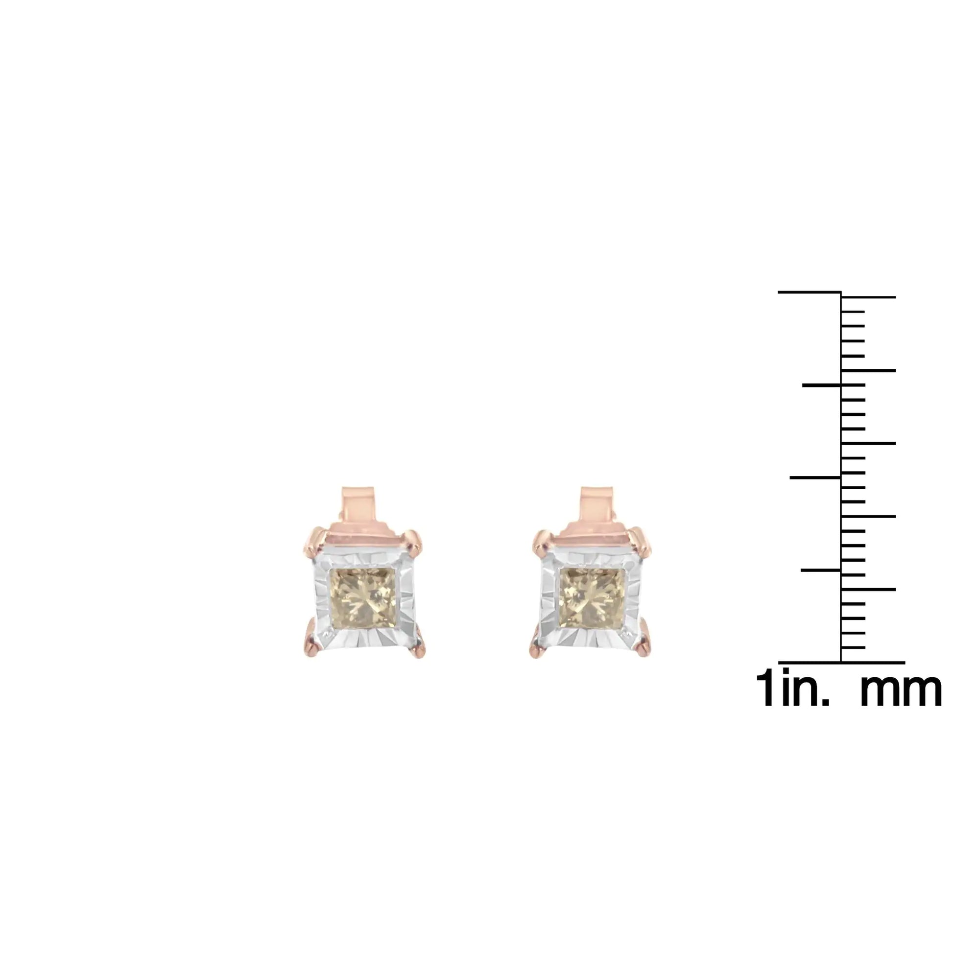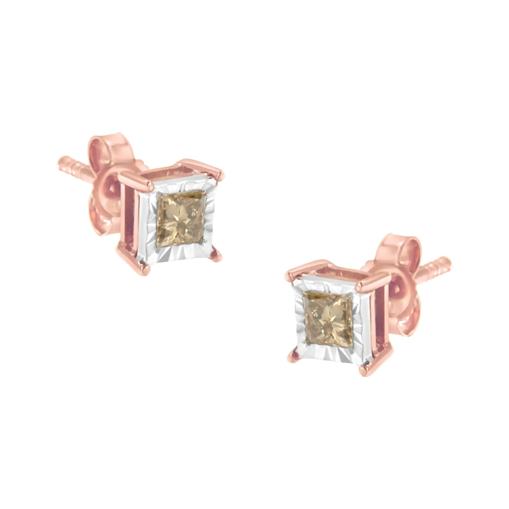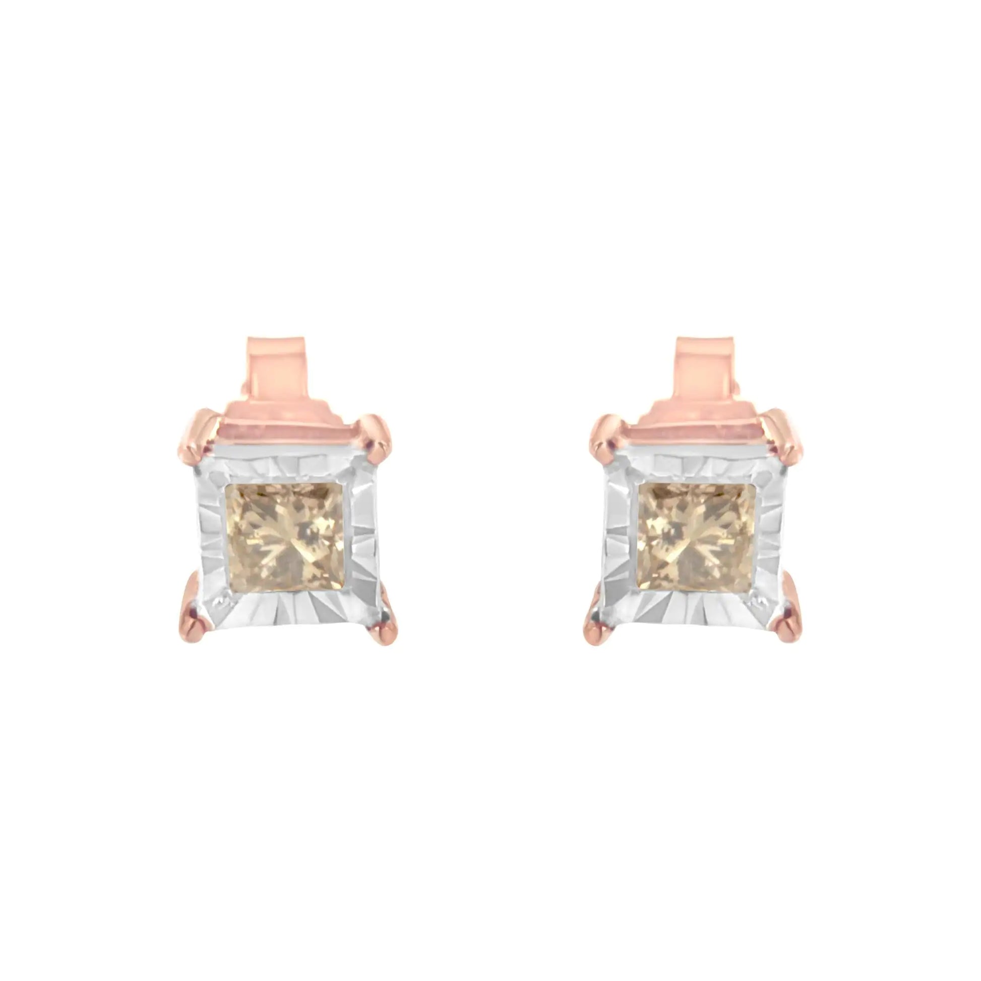 14K Rose Gold Plated Two-Tone .925 Sterling Silver 1/2 Cttw Princess-Cut Square Diamond Solitaire Miracle-Plate Stud Earrings (K-L Color, I2-I3 Clarity)