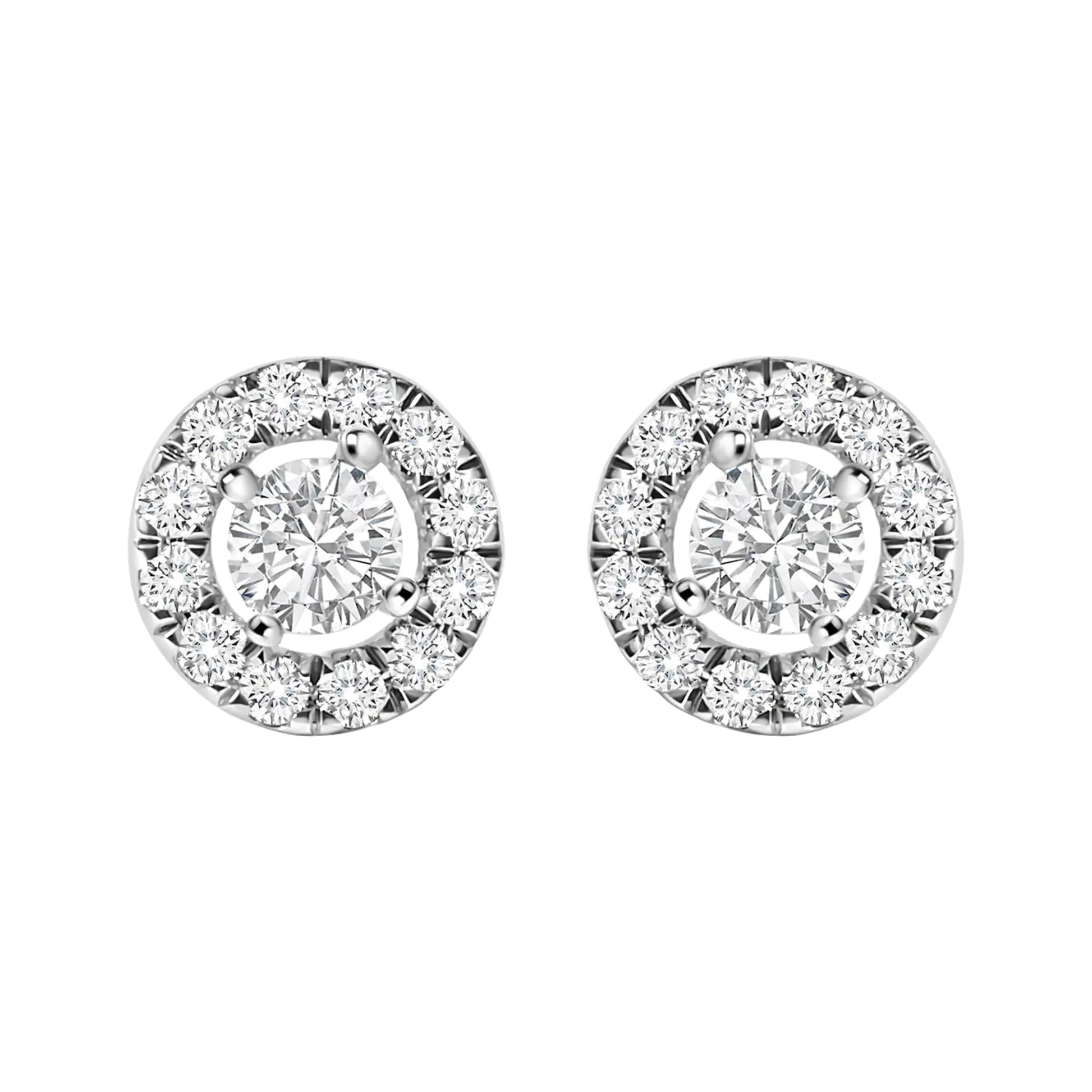 14K White Gold 3/4 Cttw Lab-Grown Diamond Floating Halo Stud Earring (F-G Color, VS1-VS2 Clarity)