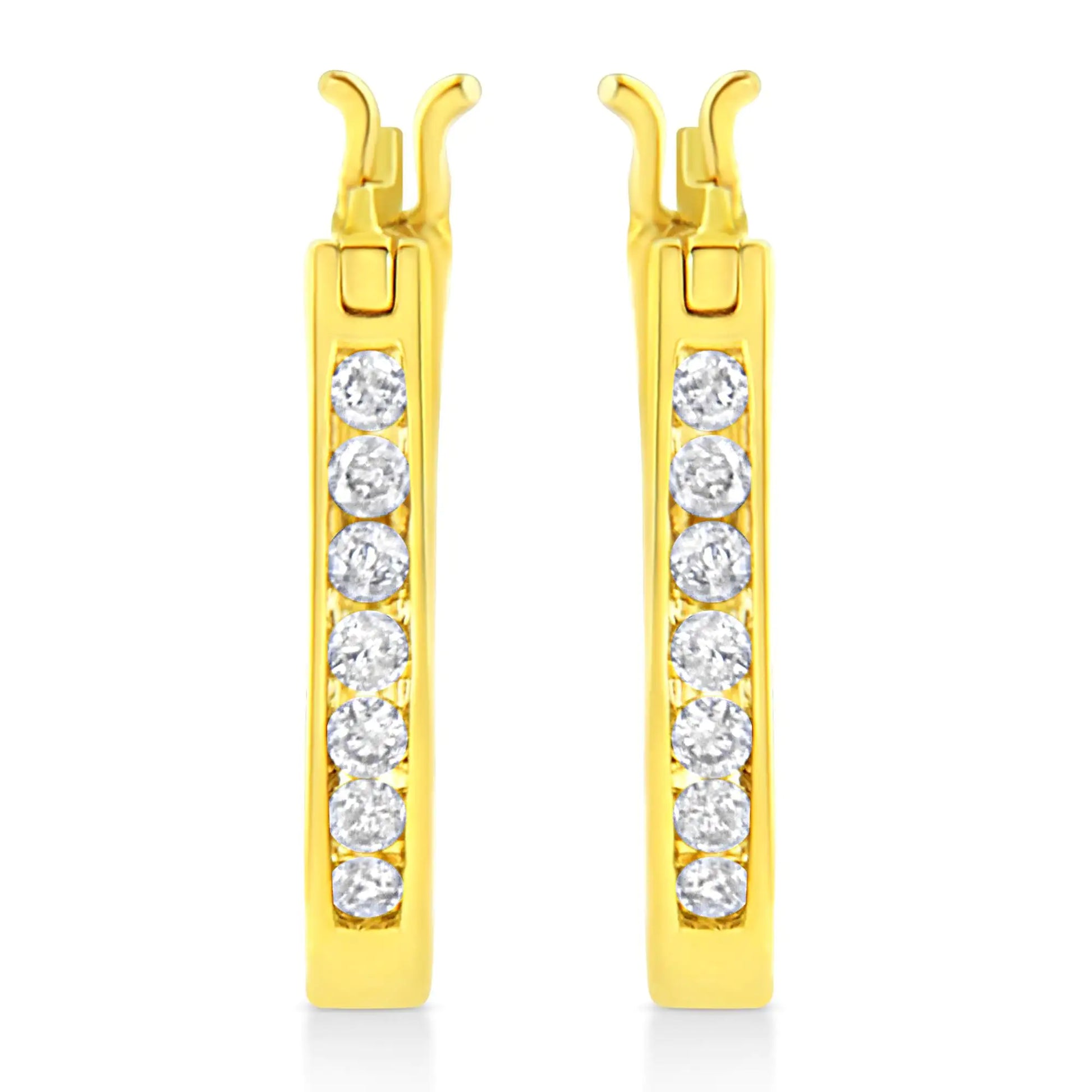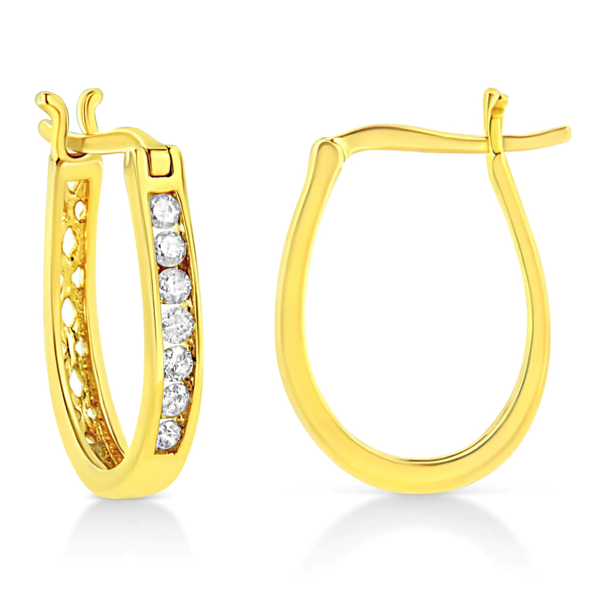 14K Yellow Gold Plated .925 Sterling Silver 1/4 Cttw Diamond Leverback 3/4" Inch Hoop Earrings (K-L Color, I2-I3 Clarity)