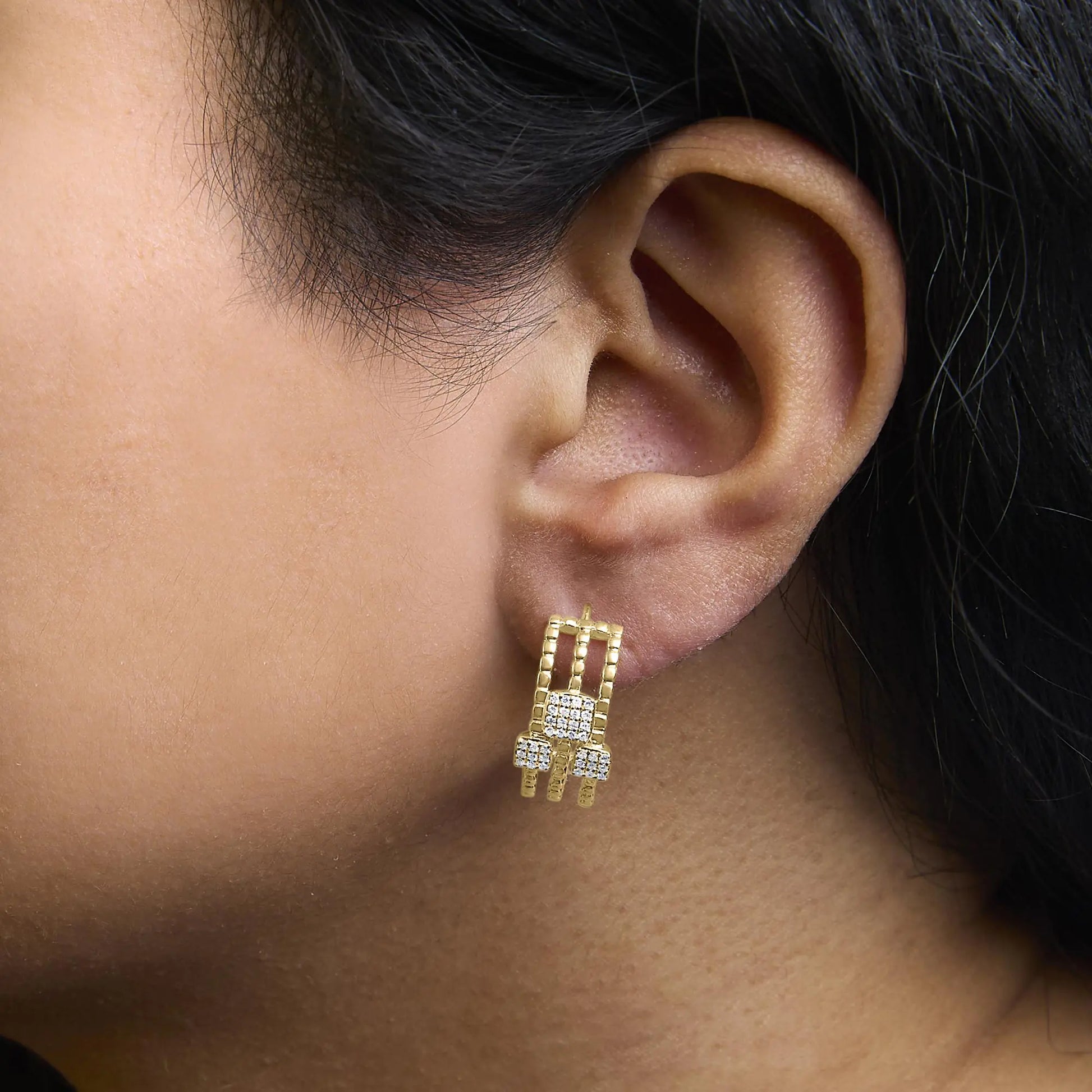 🔗 These earrings capture both light and attention with their unique multi-dimensional link design, featuring textured, interconnected links that cascade gracefully, each adorned with a glittering diamond-encrusted square setting. 💫