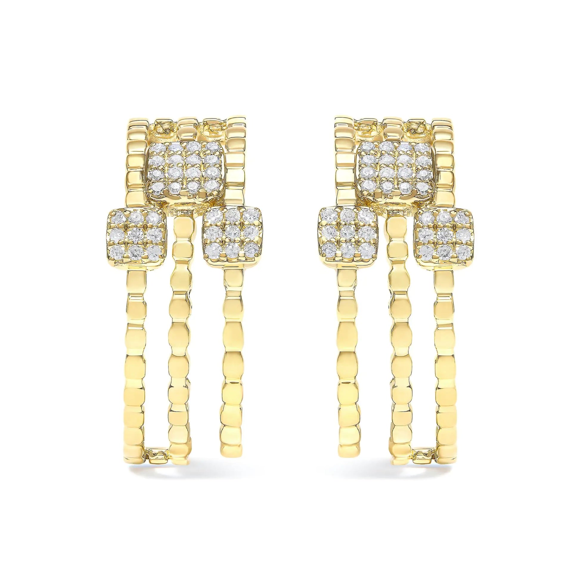 14K Yellow Gold Plated .925 Sterling Silver 1/4 Cttw Diamond Multi-Dimensional Link Dangle Stud Earrings (H-I Color, I1-I2 Clarity)