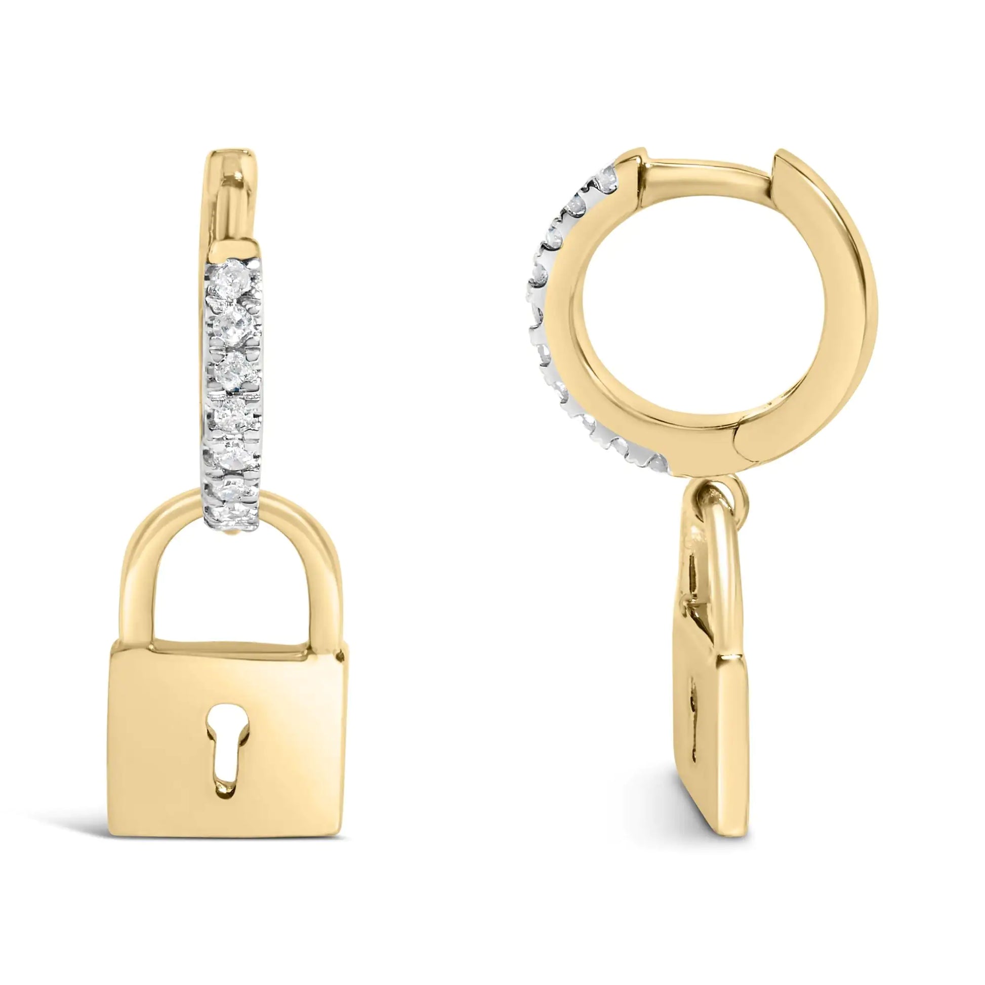 14K Yellow Gold Plated .925 Sterling Silver 1/6 Cttw Diamond Lock Hoop Earring (I-J Color, I3 Clarity)