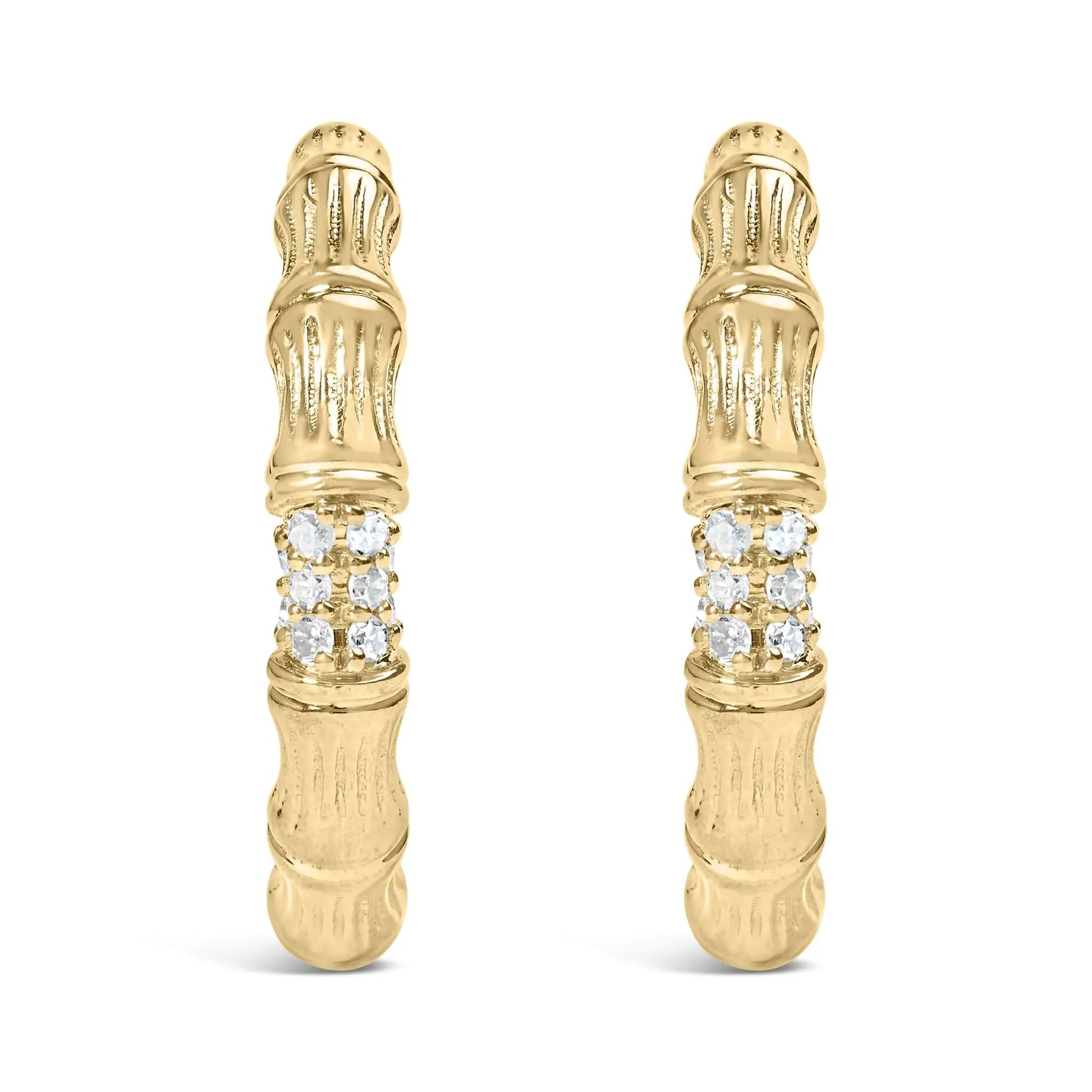 14K Yellow Gold Plated .925 Sterling Silver 1/6 Cttw Hammered J Hoop Earrings (H-I Color, I1-I2 Clarity)