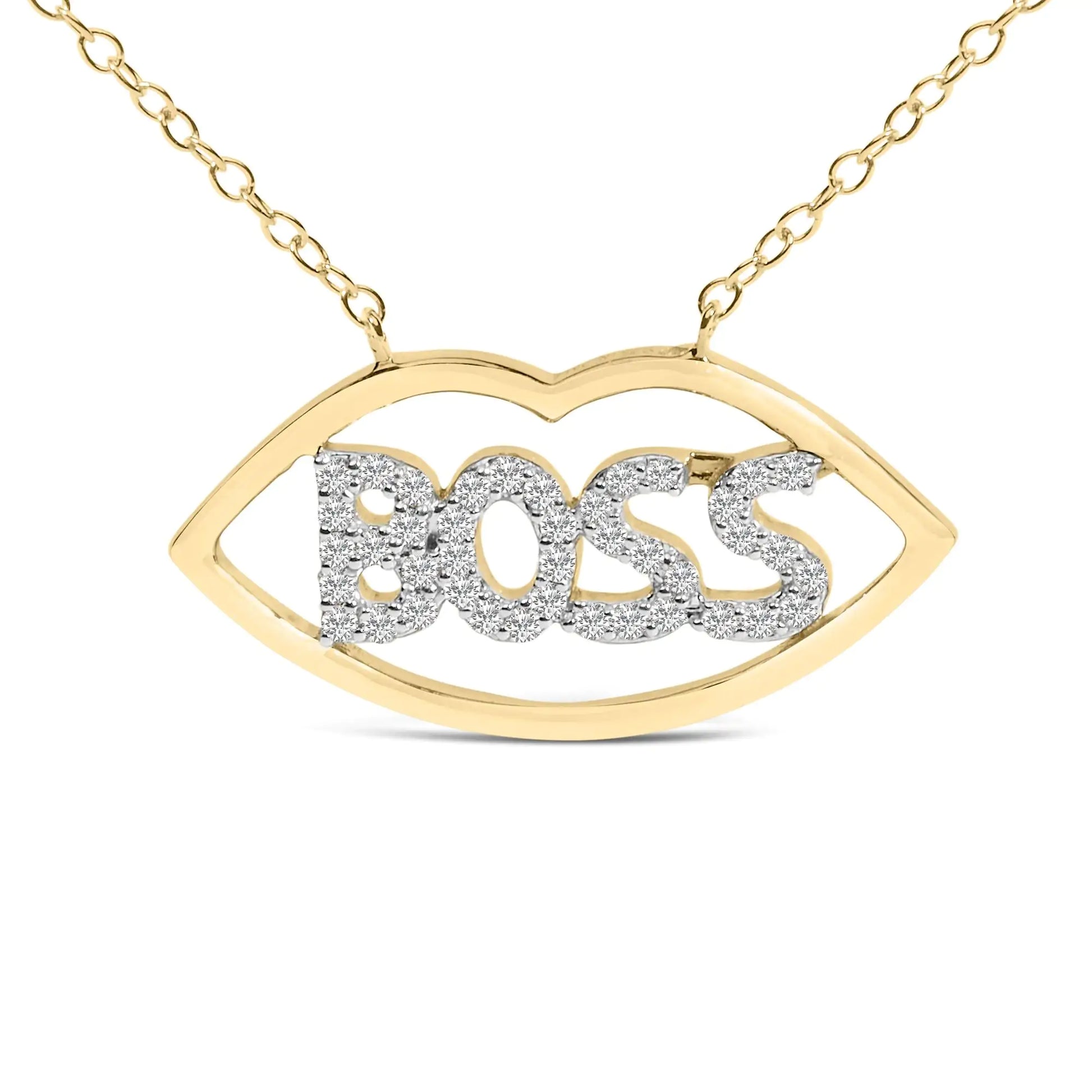 • Natural diamonds, totaling 1/4 cttw, intricately set to spell out "BOSS" in a pendant shaped like lips 💋, proclaiming a message of empowerment and self-celebration 💪.