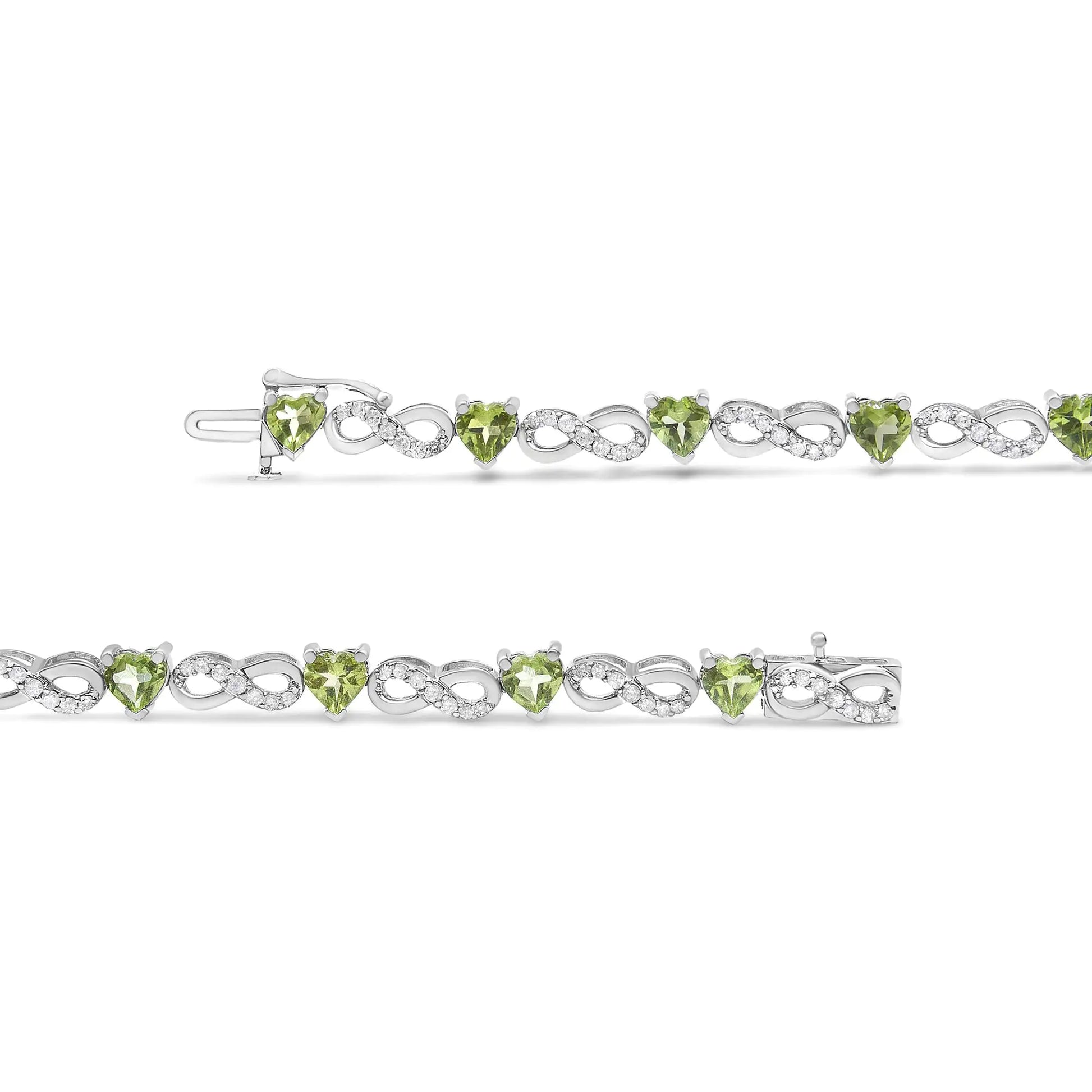 .925 Sterling Silver 1.00 Cttw Diamond and 4.00mm Lab Created Green Heart-Shaped Peridot Infinity Link Bracelet (I-J Color, I2-I3 Clarity) - 7.25"