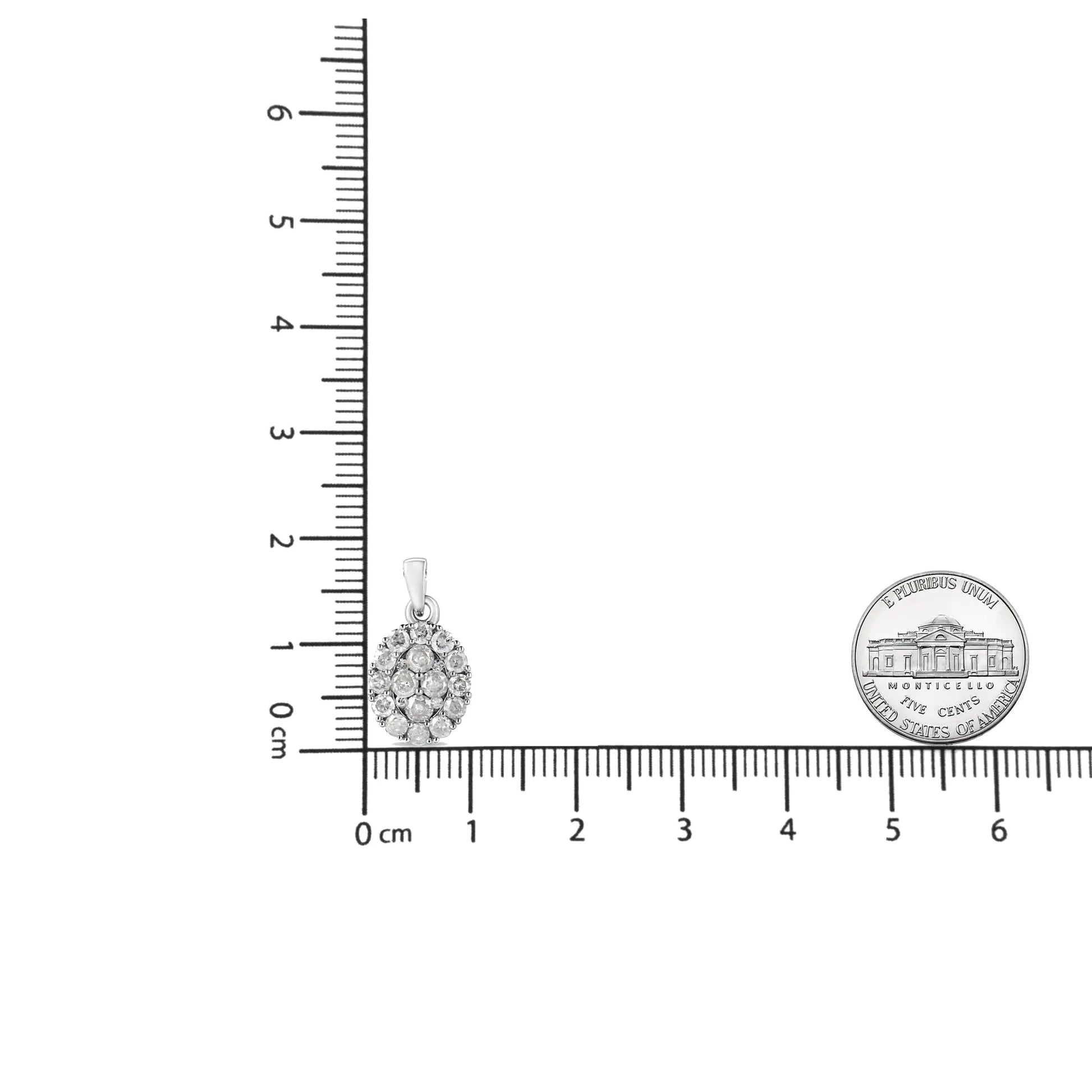 .925 Sterling Silver 1 1/2 Cttw Diamond Oval Cluster Pendant Necklace (I-J Color, I2-I3 Clarity) - 18"