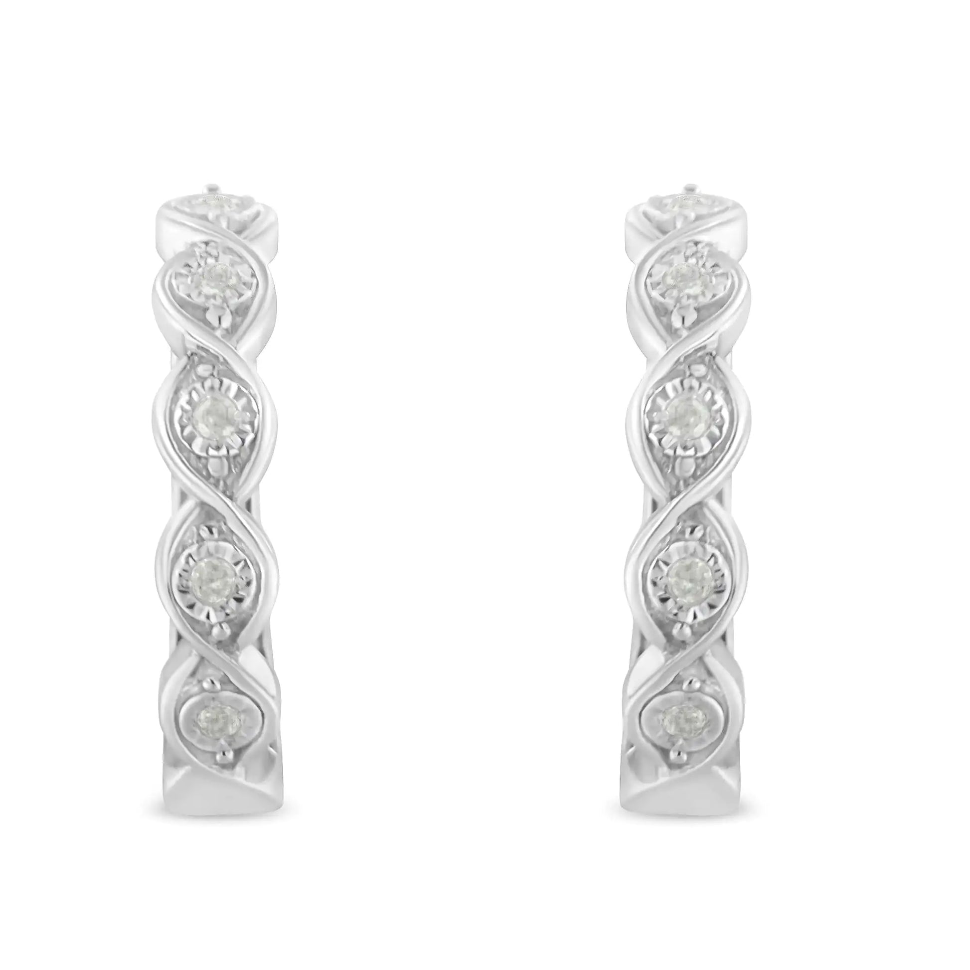 .925 Sterling Silver 1/10 Cttw Miracle-Set Diamond Infinity Swirl Hoop Earrings (I-J Color, I3 Clarity)
