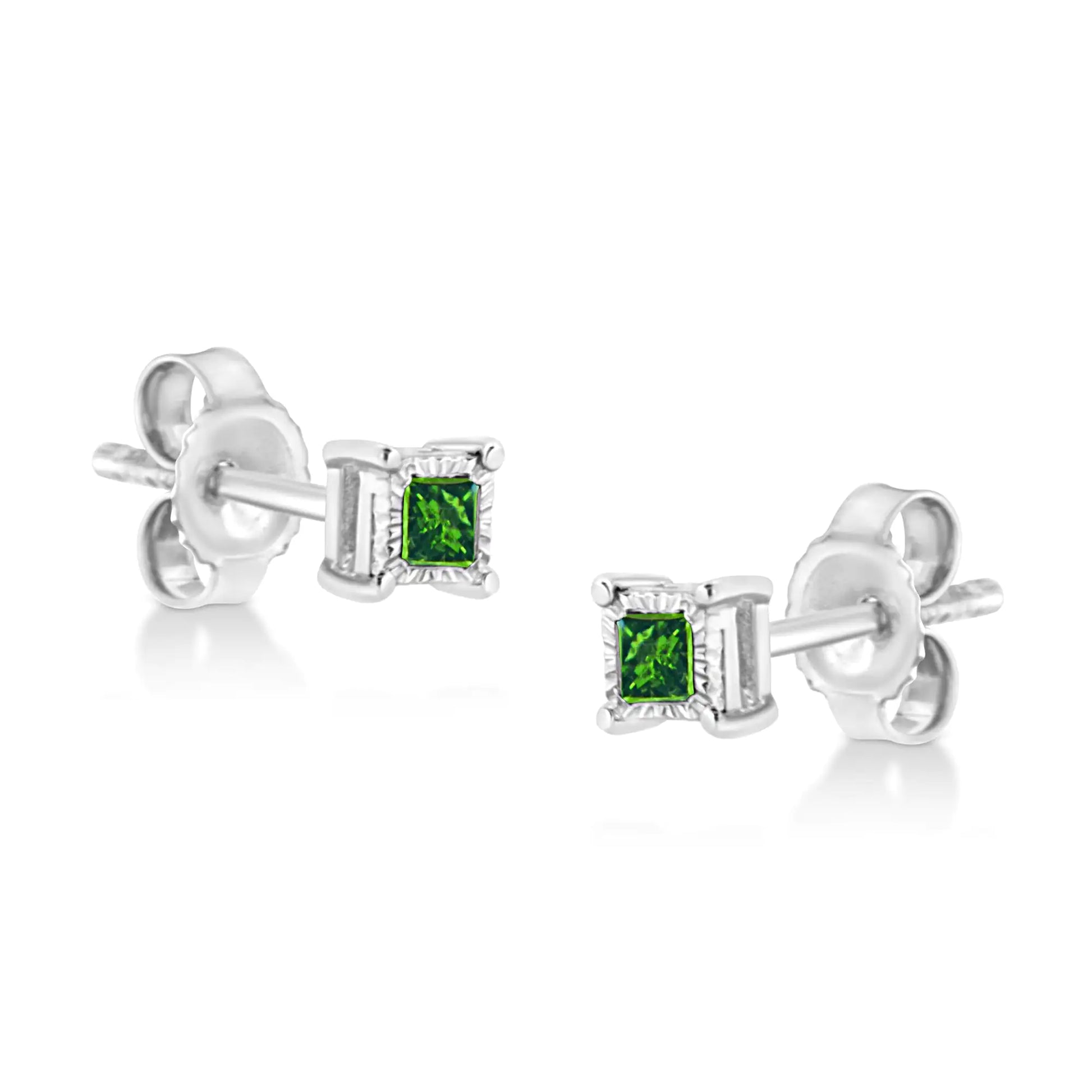 .925 Sterling Silver 1/10 Cttw Miracle Set Princess-Cut Treated Green Diamond Stud Earrings (Green Color, I1-I2 Clarity)