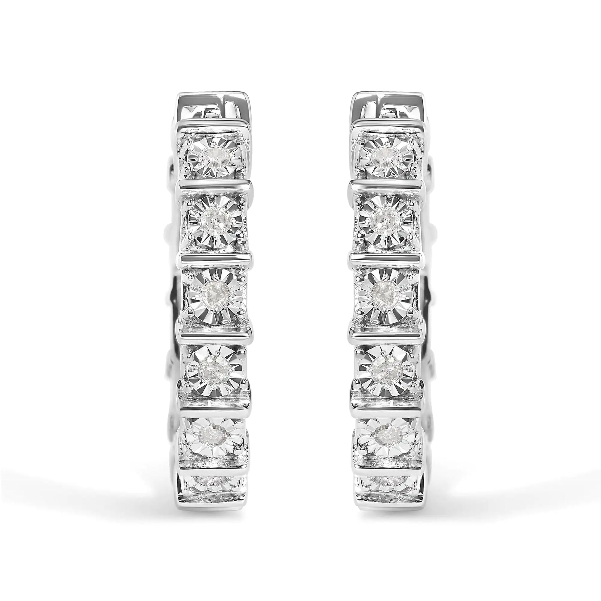 .925 Sterling Silver 1/2 Cttw Diamond Bar and Plate Eternity Hoop Earrings (I-J Color, I3 Clarity)