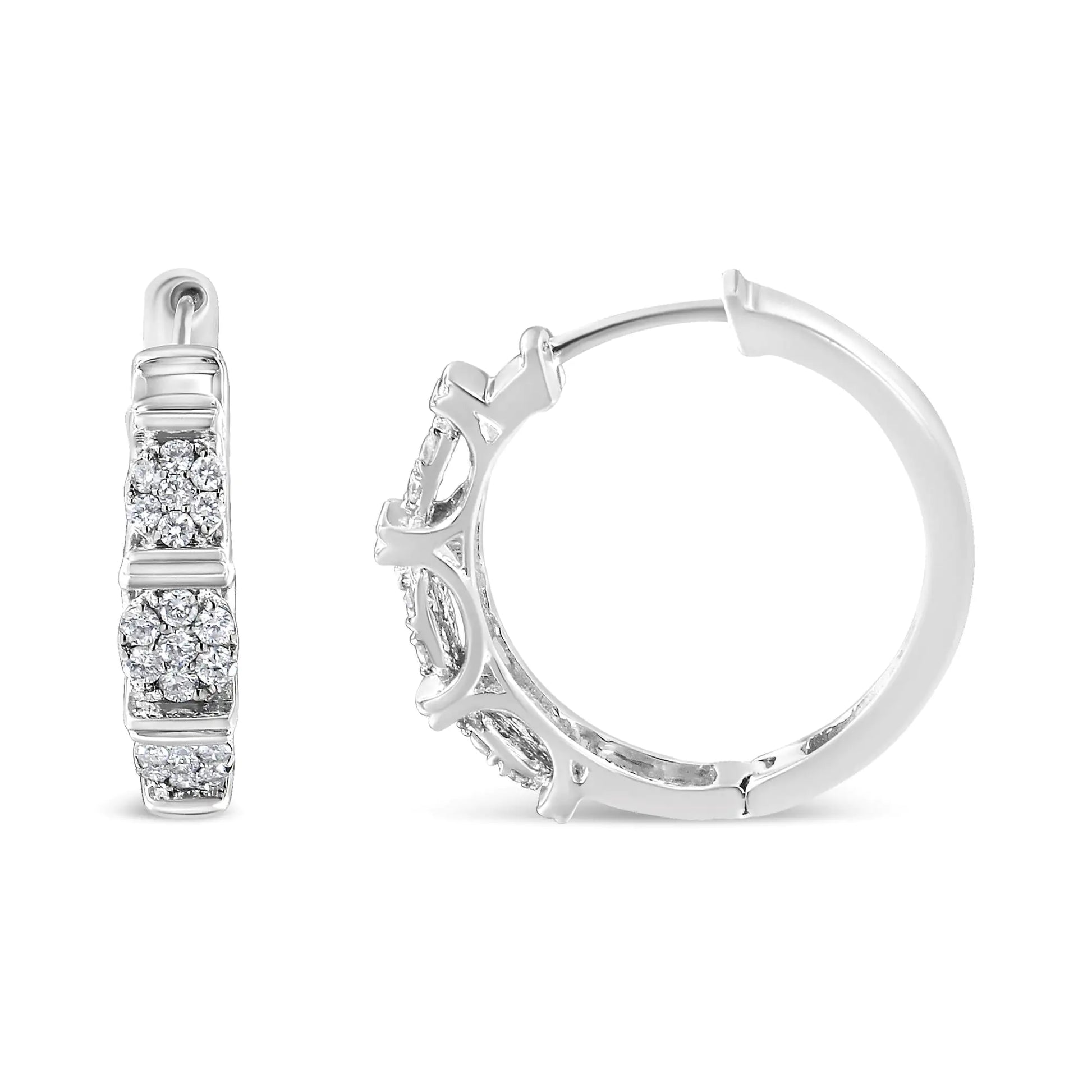 .925 Sterling Silver 1/2 Cttw Lab Grown Round Diamond Floral Cluster Hoop Earrings (F-G Color, SI1-SI2 Clarity)