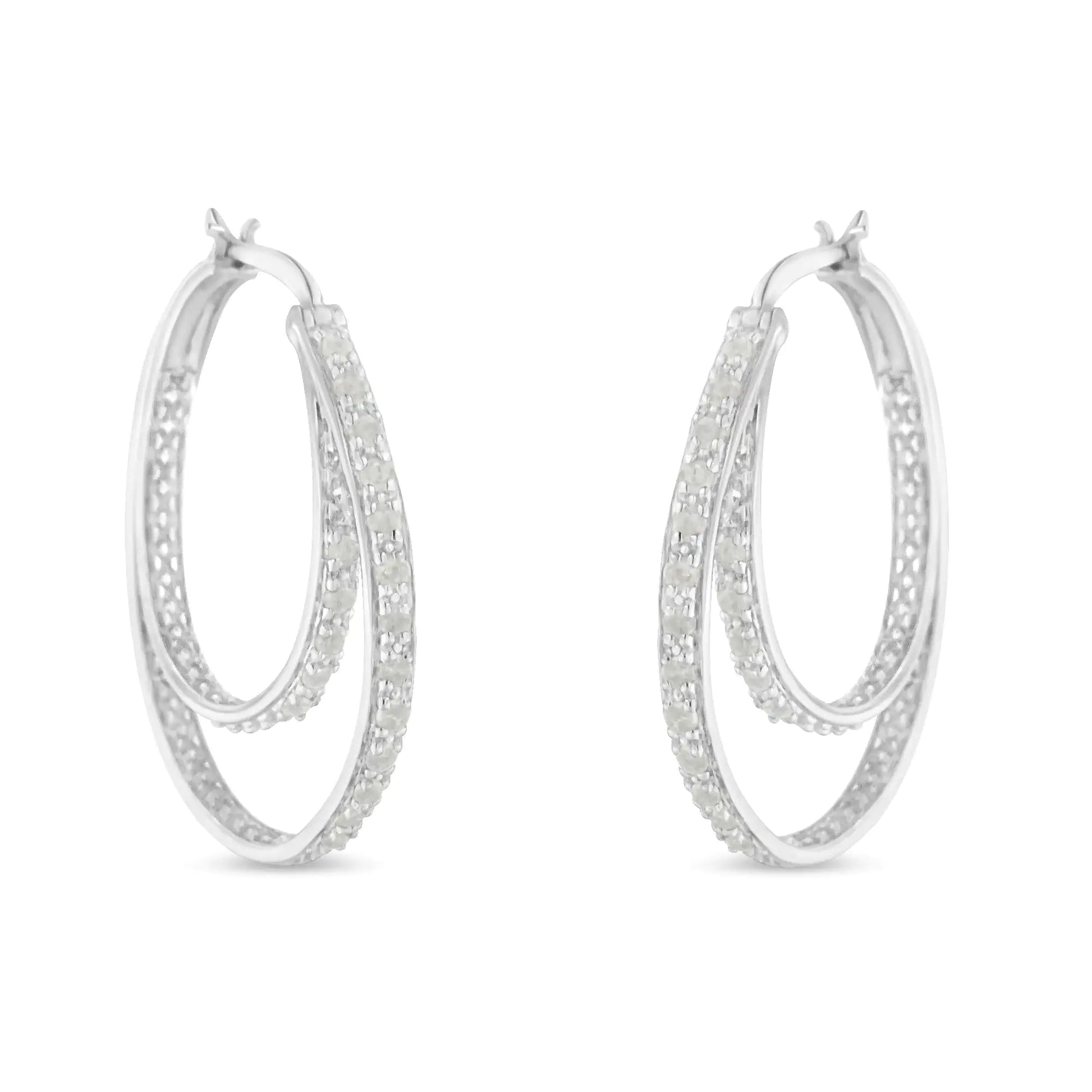 .925 Sterling Silver 1/2 cttw Miracle-Set Diamond Double Hoop with Latchback Earrings (I-J Color, I3 Clarity)