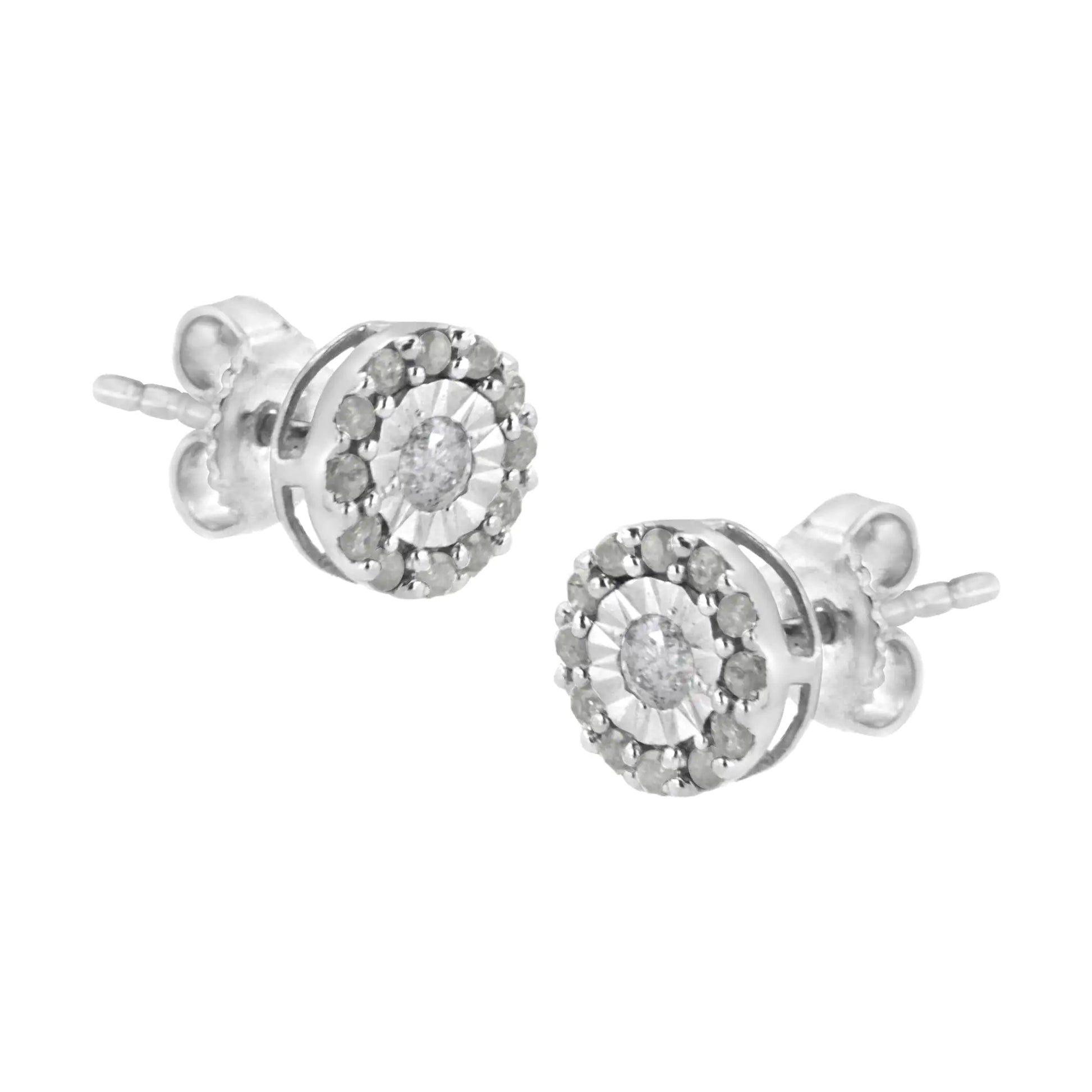 .925 Sterling Silver 1/2 cttw Miracle-Set Round Diamond Halo Stud Earrings (I-J Clarity, I3 Color)