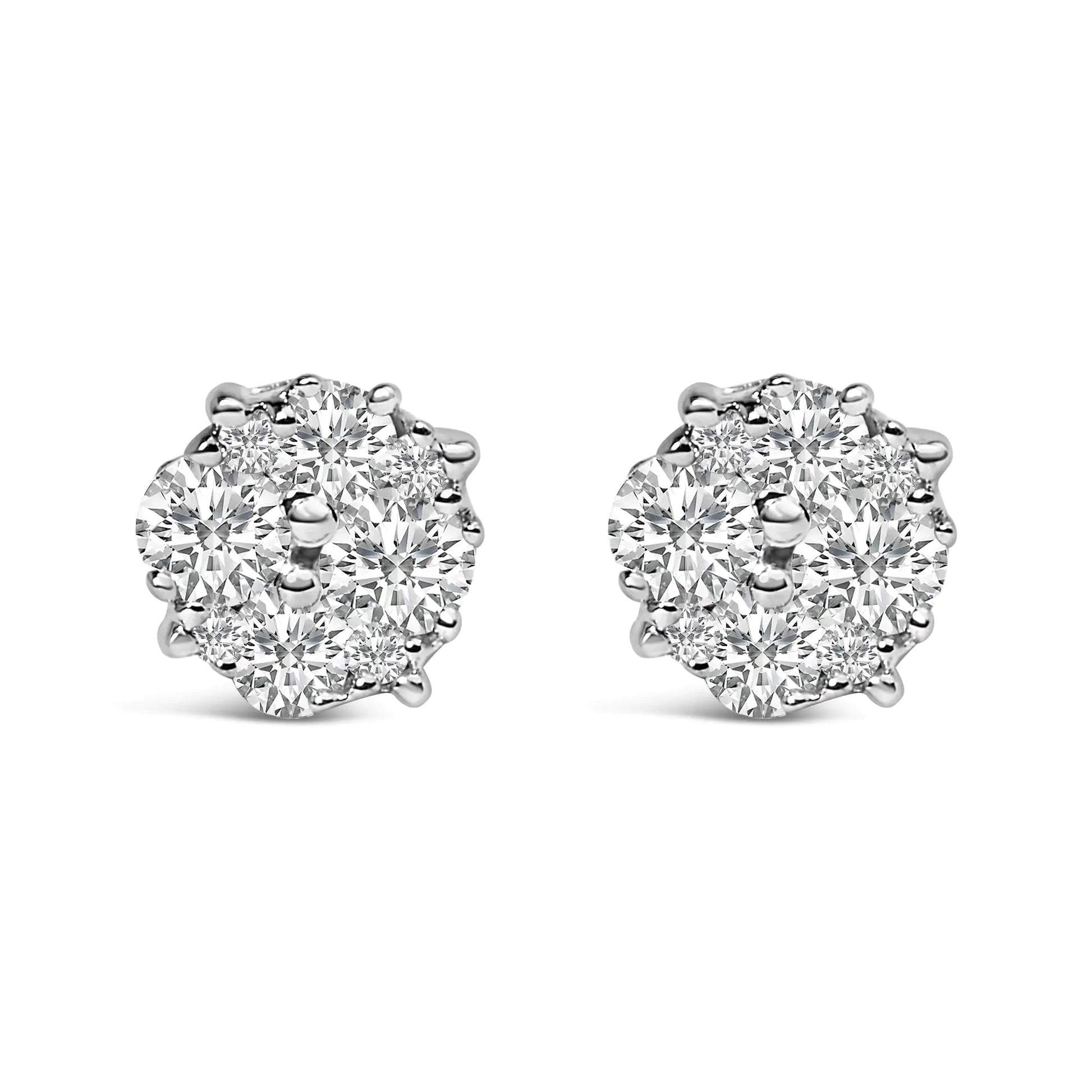 .925 Sterling Silver 1/2 cttw Prong Set Round-Cut Diamond Cluster Stud Earring (I-J Color, I2-I3 Clarity)
