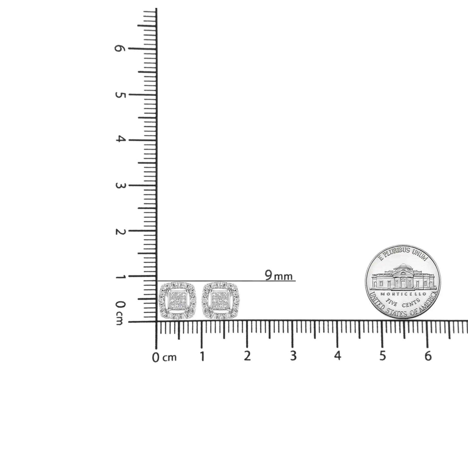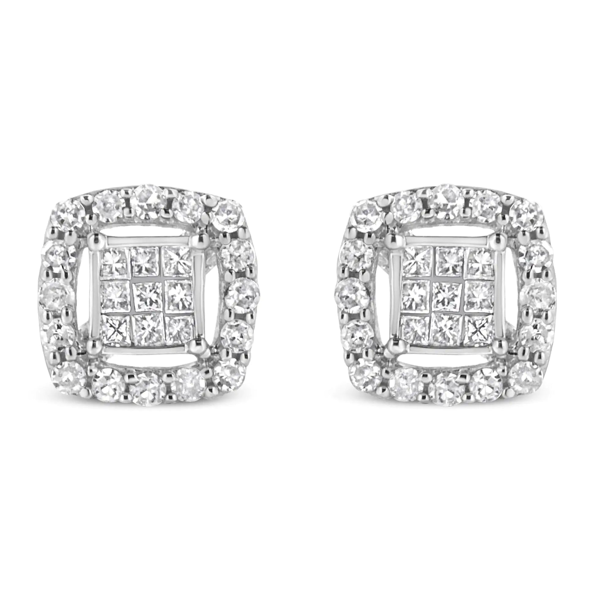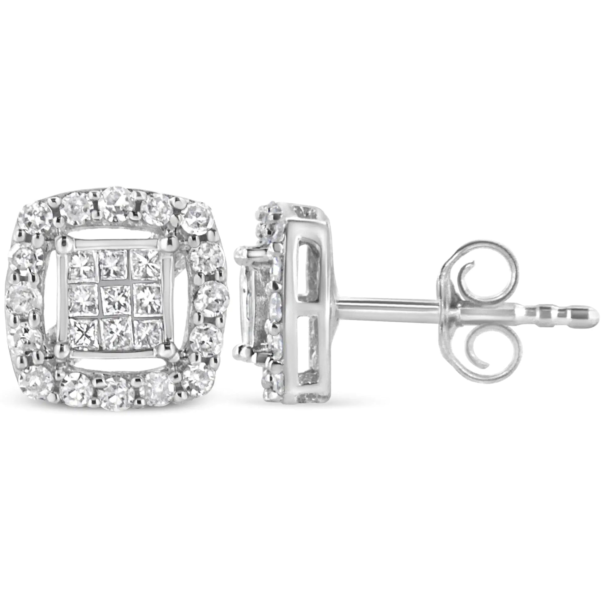 .925 Sterling Silver 1/2 Cttw Round and Princess-Cut Diamond Stud Earrings (I-J Color, I1-I2 Clarity)