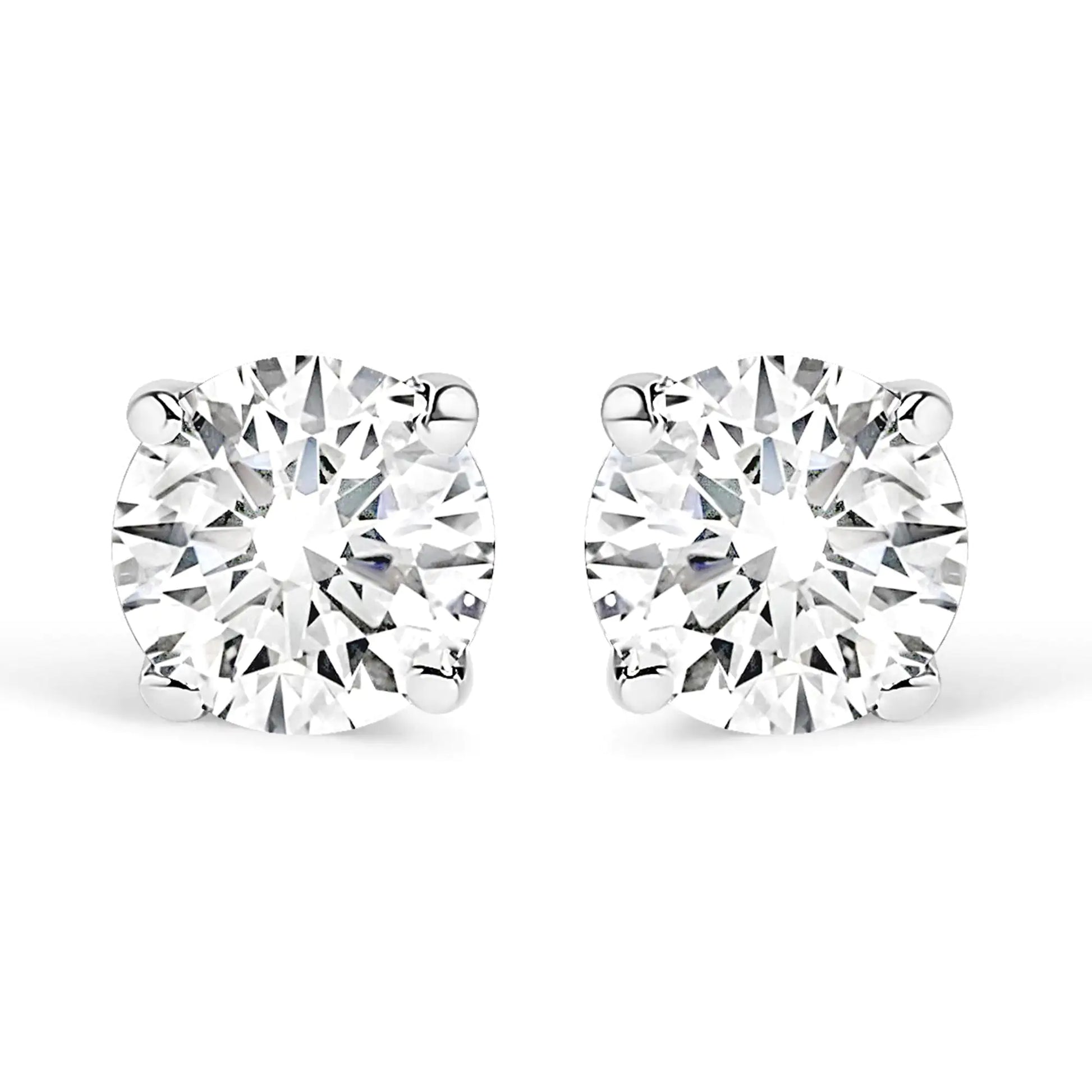 .925 Sterling Silver 1/2 Cttw Round Brilliant-Cut Lab Grown Diamond Classic 4-Prong Stud Earrings (F-G Color, VS1-VS2 Clarity)