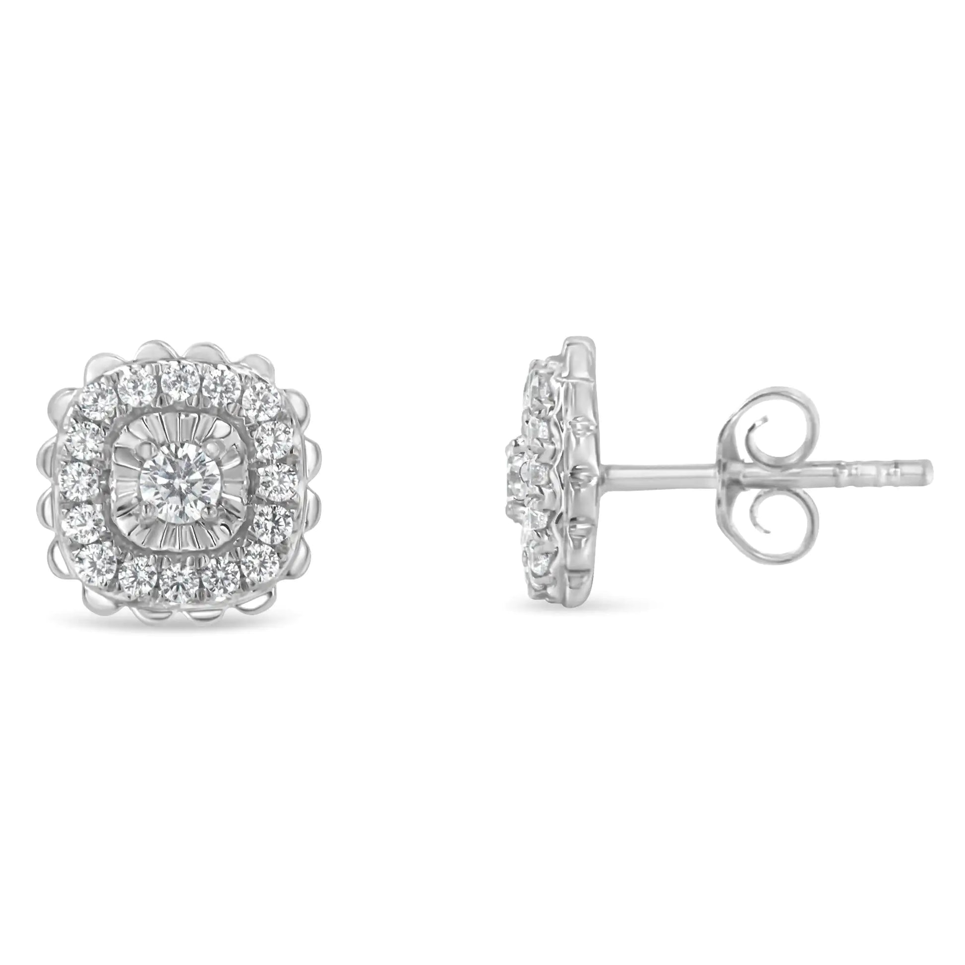 .925 Sterling Silver 1/2 Cttw Round-Cut Diamond Halo Cluster Stud Earring (I-J Color, I2-I3 Clarity)