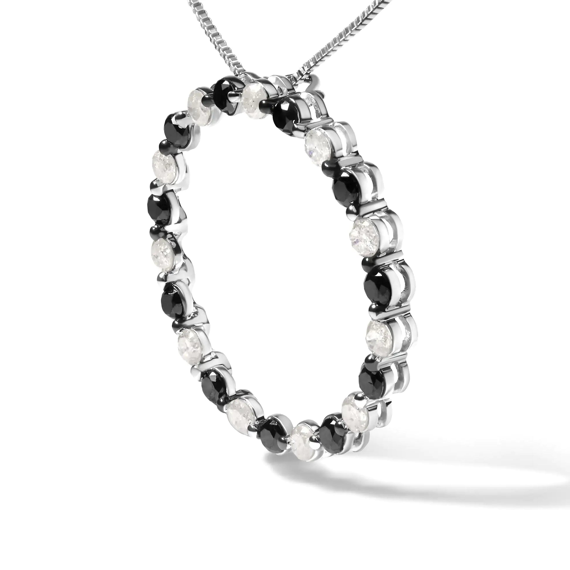 .925 Sterling Silver 1 3/4 Cttw Alternating Black and White Diamond Open Circle Hoop Pendant Necklace (H-I Color, I2-I3 Clarity) - 18" Inches