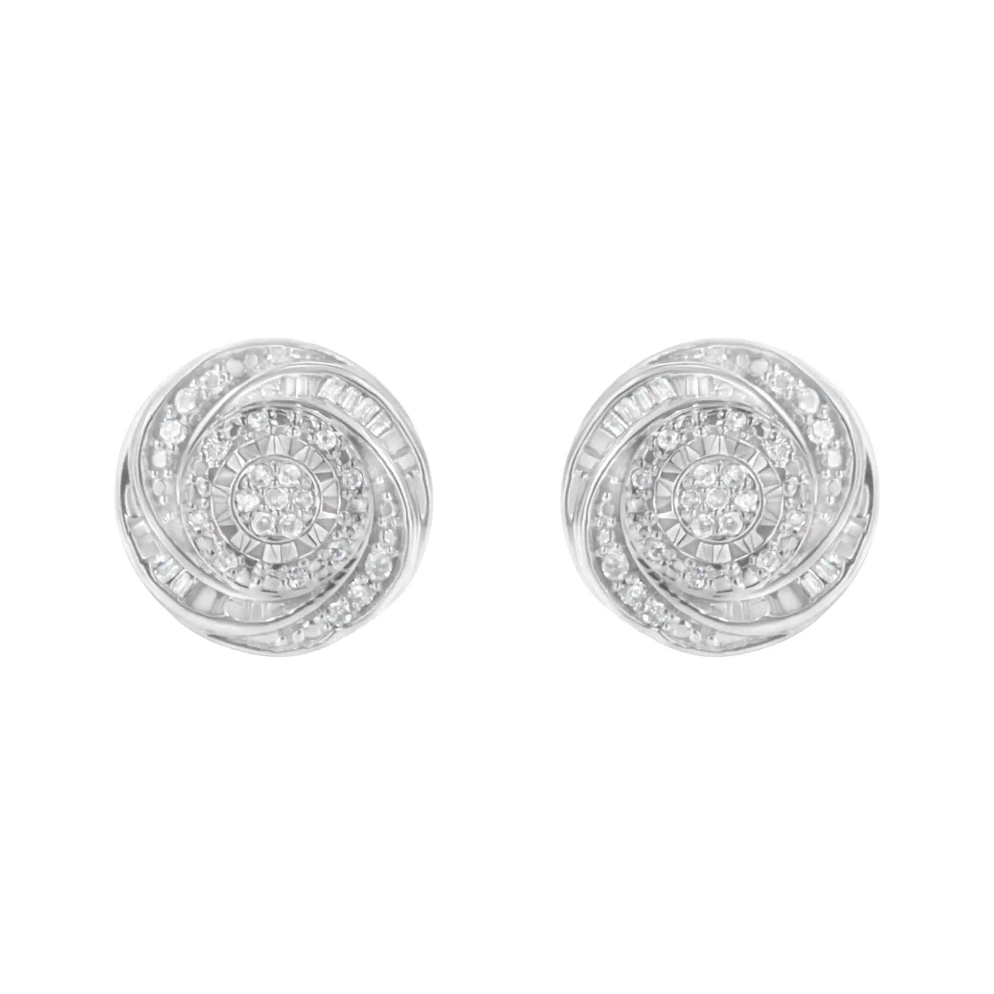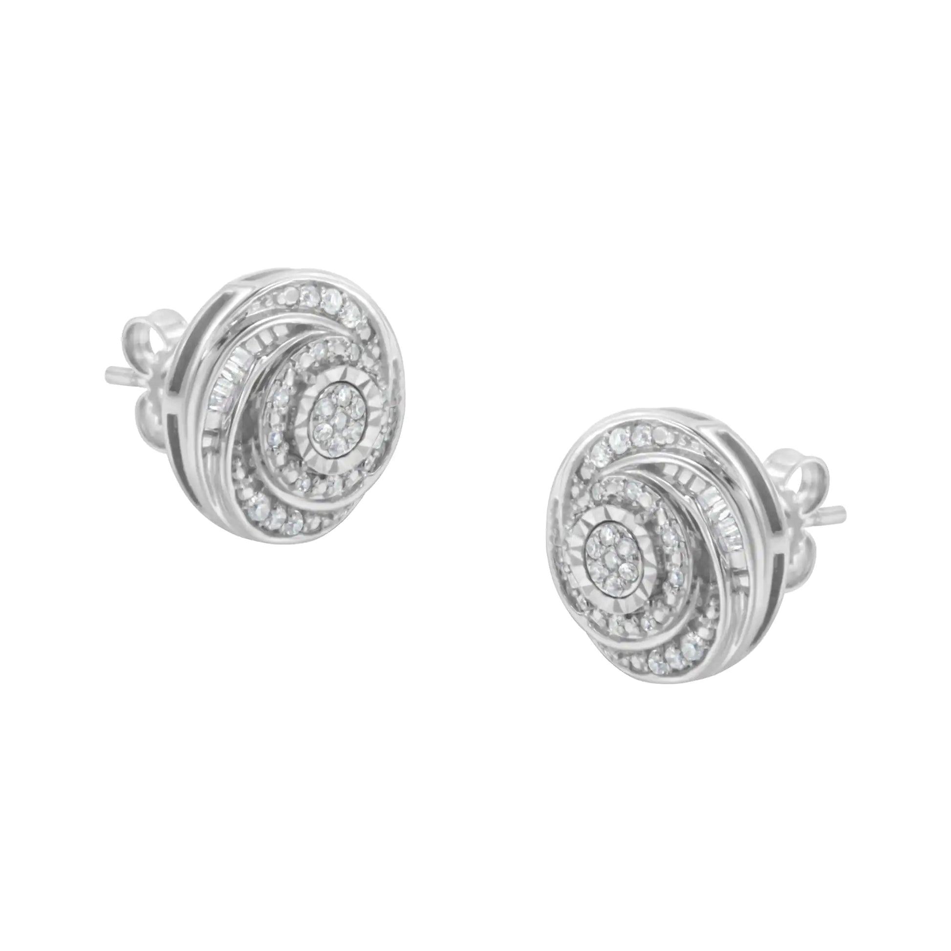 .925 Sterling Silver 1/4 Cttw Baguette and Round Diamond Swirl Love Knot Stud Earrings (I-J Color, I3 Clarity)