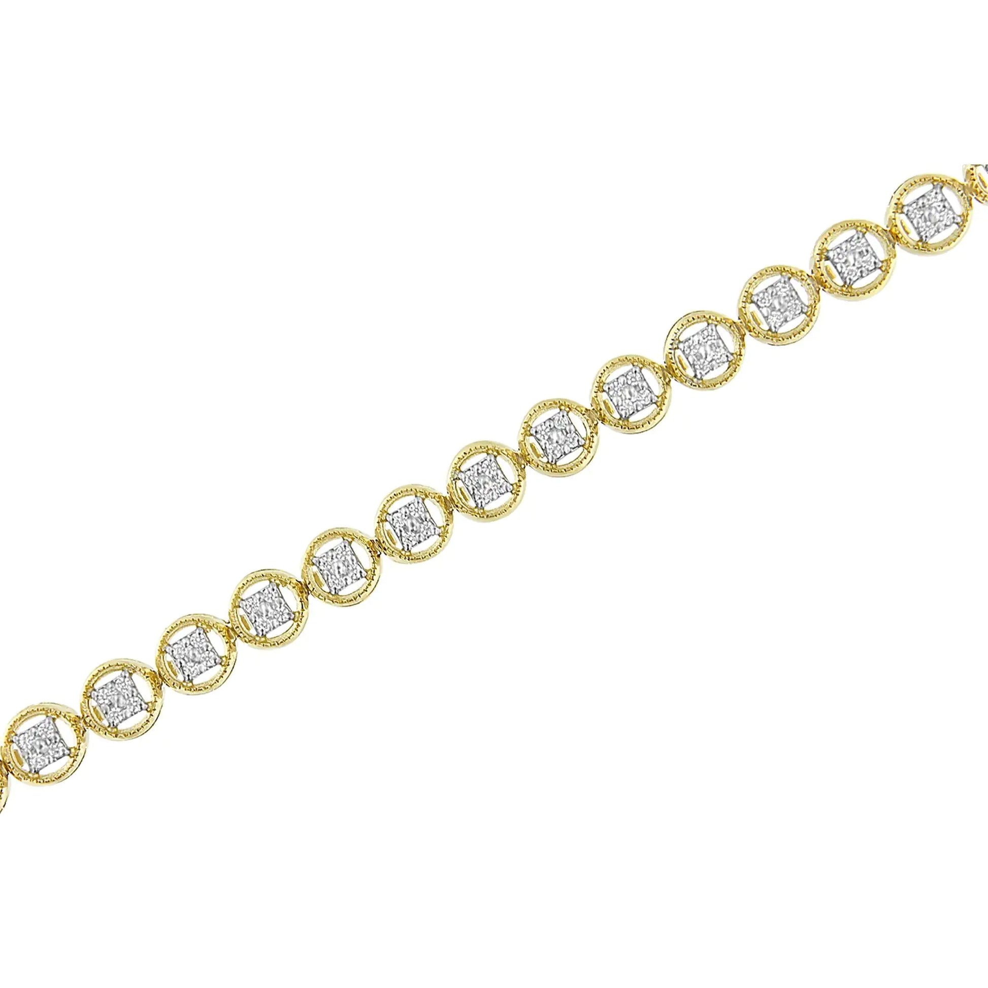 .925 Sterling Silver 1/4 Cttw Diamond 7" Open Circle Wheel Link Tennis Bracelet (I-J Color, I2-I3 Clarity)