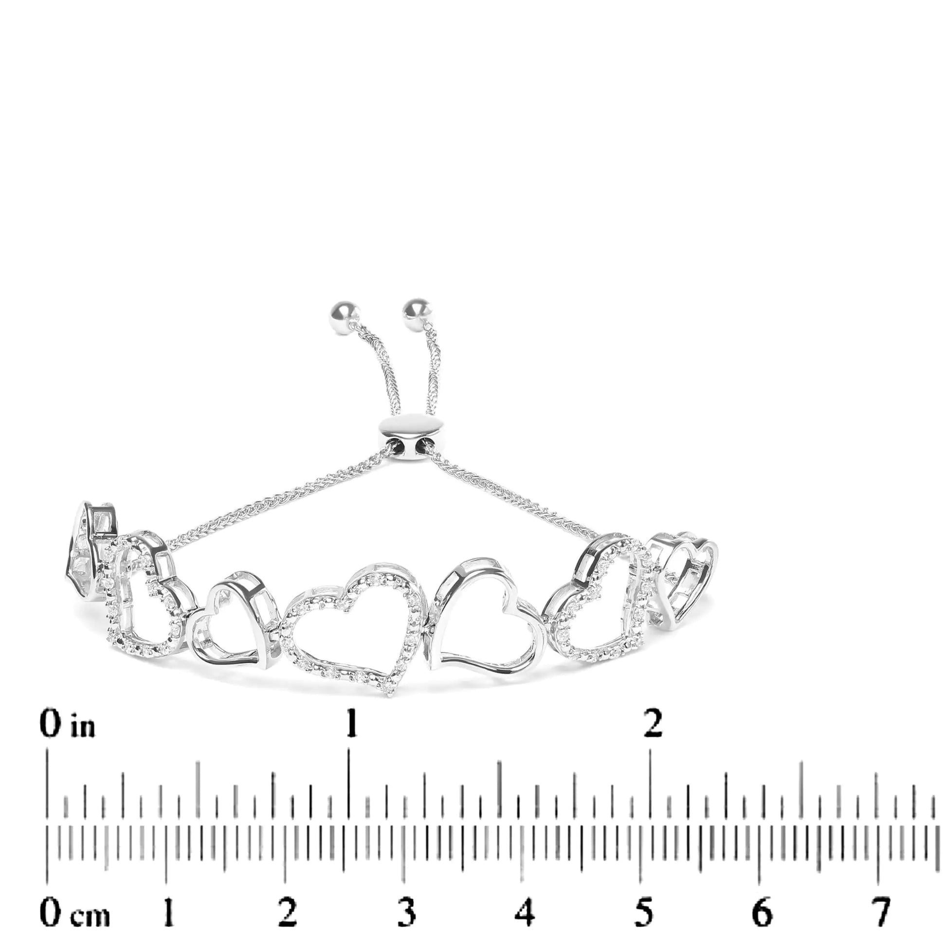 .925 Sterling Silver 1/4 Cttw Diamond Open Heart Link Adjustable Bolo Bracelet (I-J Color, I2-I3 Clarity) - 4 to 10 Inches