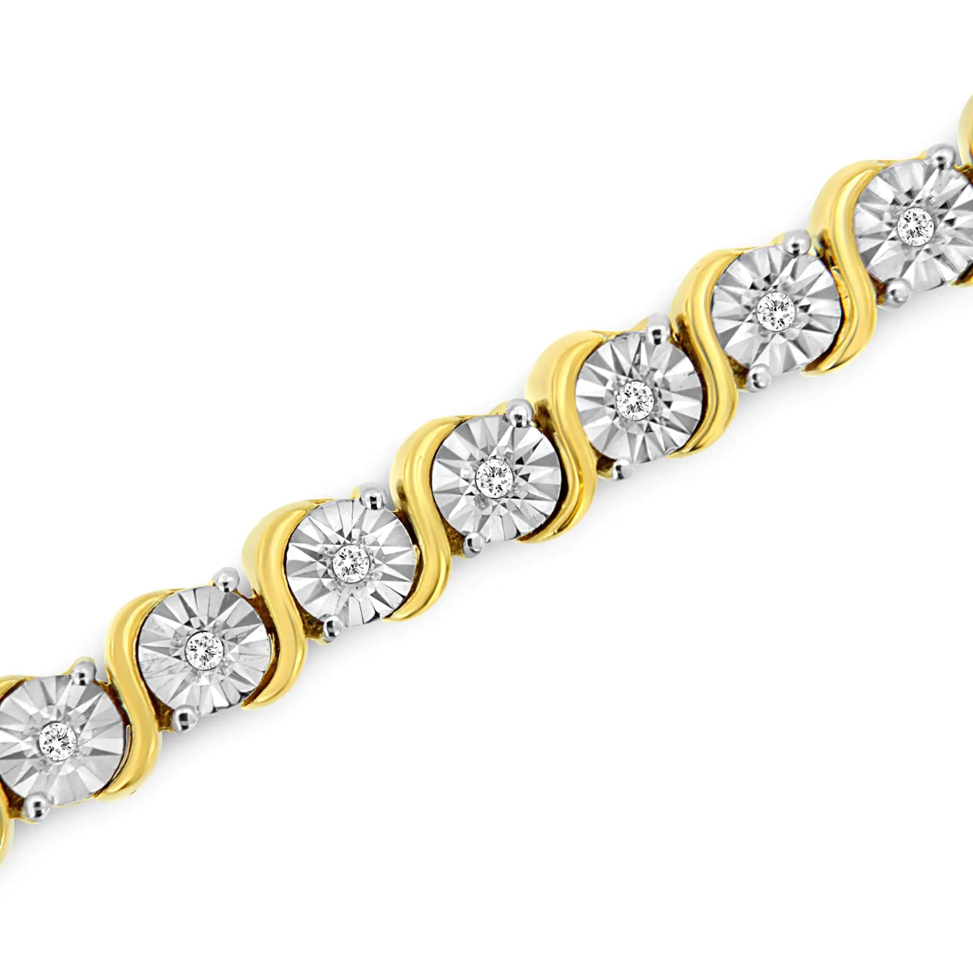.925 Sterling Silver 1/4 Cttw Diamond Round Miracle Plate and "S" Link Tennis Bracelet (I-J Color, I2- I3 Clarity) - 7"