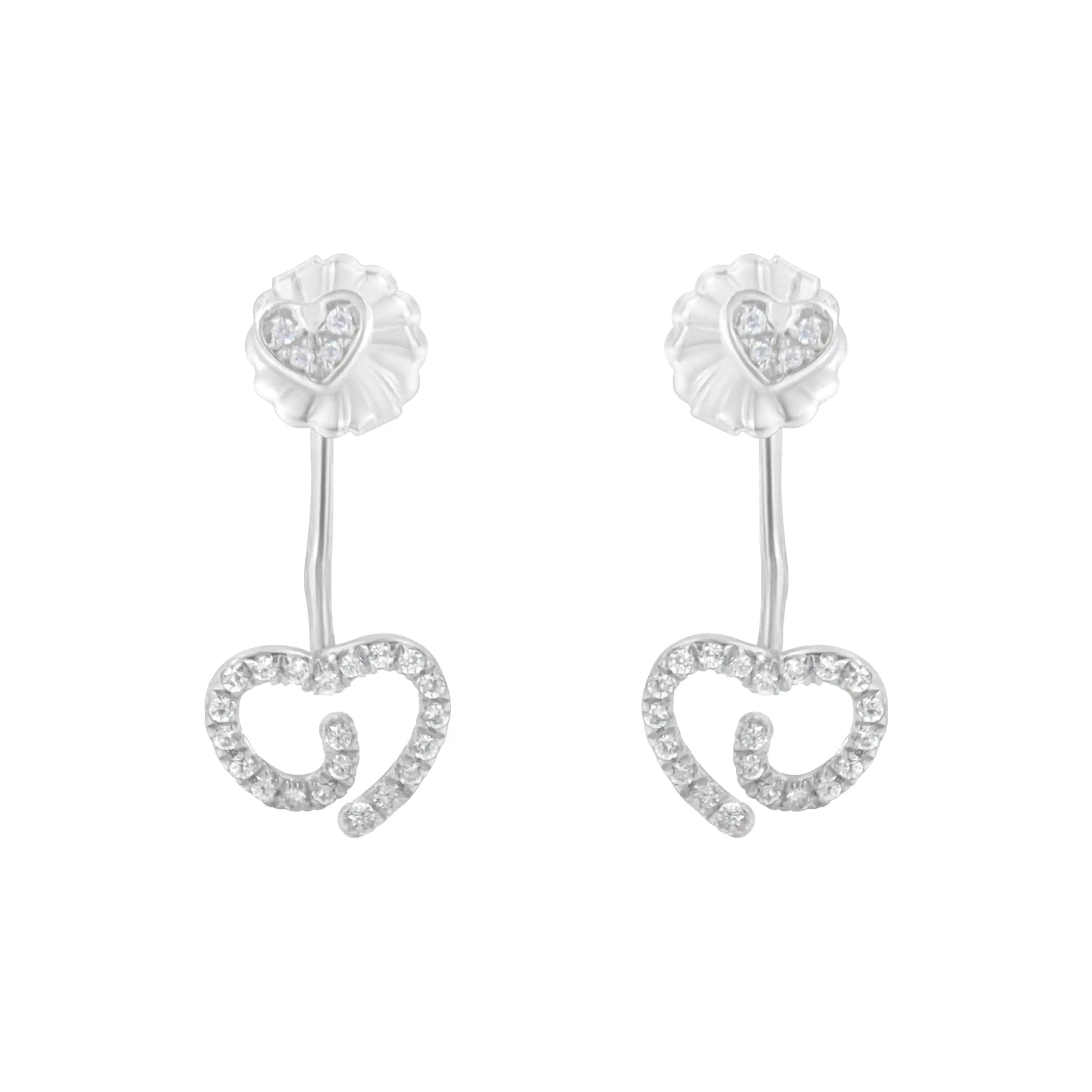 .925 Sterling Silver 1/4 Cttw Diamond Swirl Heart Front/Back Earrings (I-J Color, I2-I3 Clarity)
