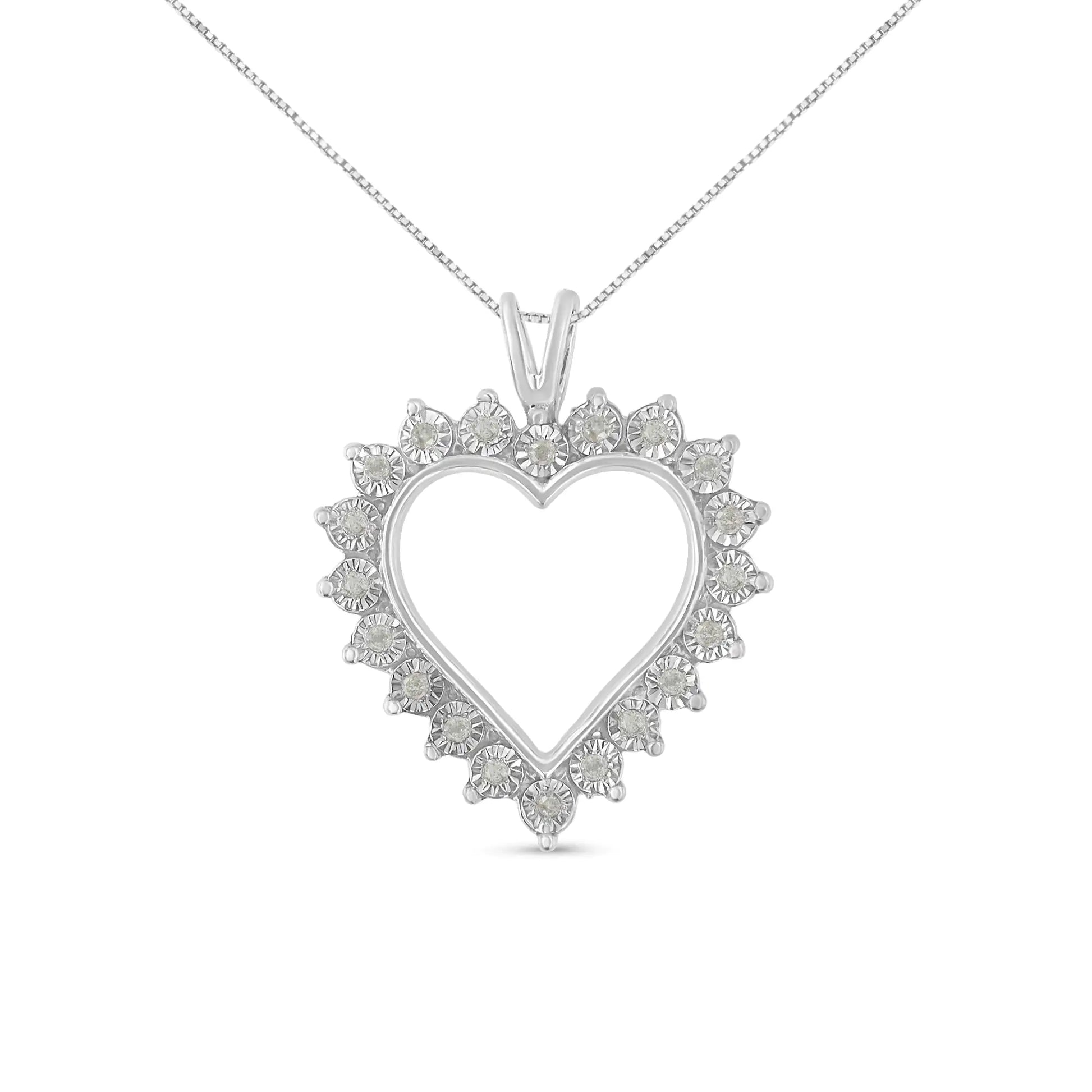 .925 Sterling Silver 1/4 Cttw Miracle Set Diamond Open Heart 18" Pendant Necklace (I-J Color, I3 Clarity)