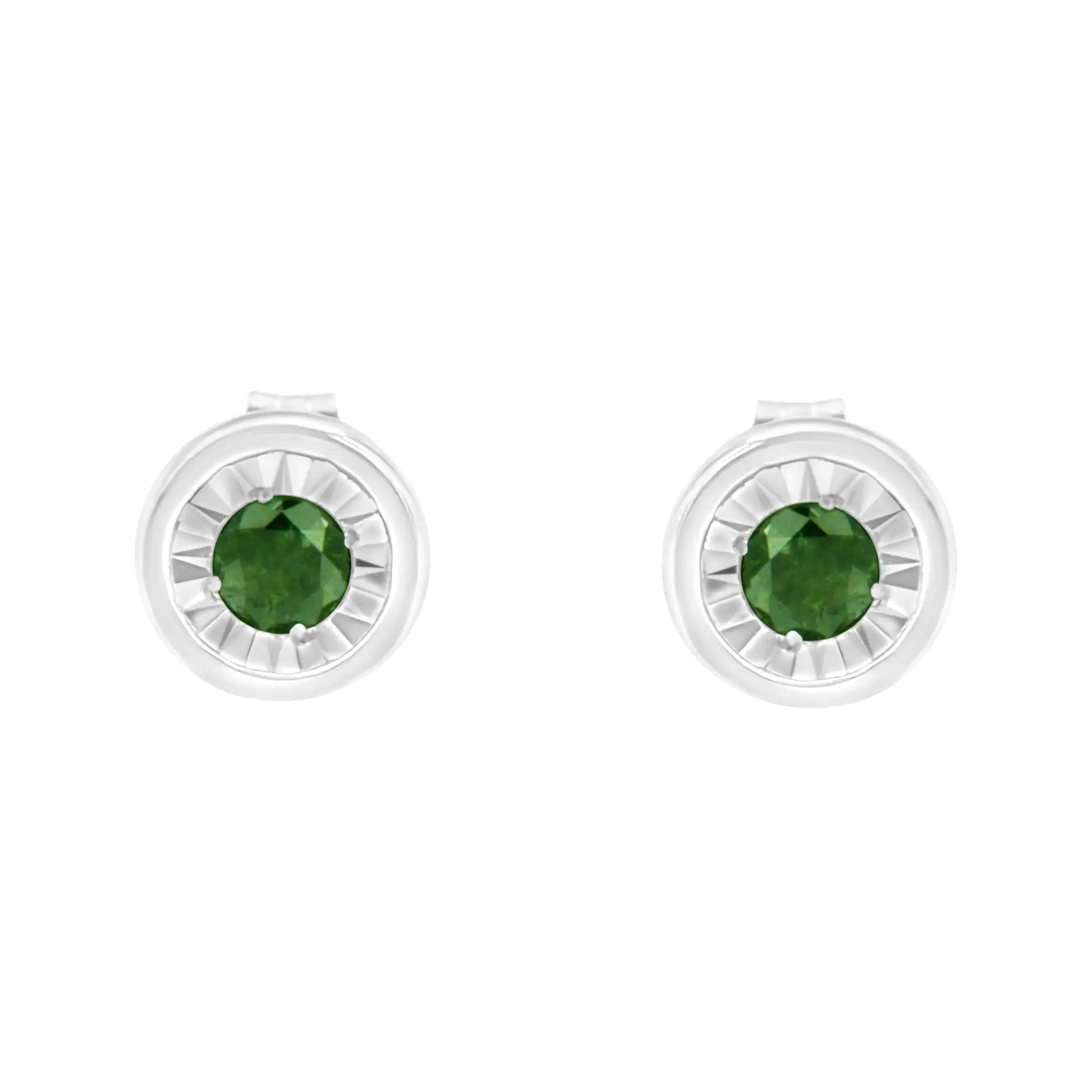 .925 Sterling Silver 1/4 Cttw Round Brilliant-Cut Green Diamond Miracle-Set Stud Earrings (Fancy Color-Enhanced, I1-I2 Clarity)