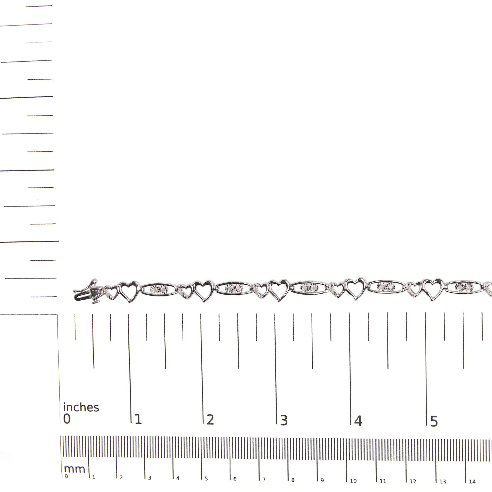 925 Sterling Silver 1/5 Cttw Diamond Double Heart Link Bracelet (I-J Color, I3 Clarity) - 7.25" Inches