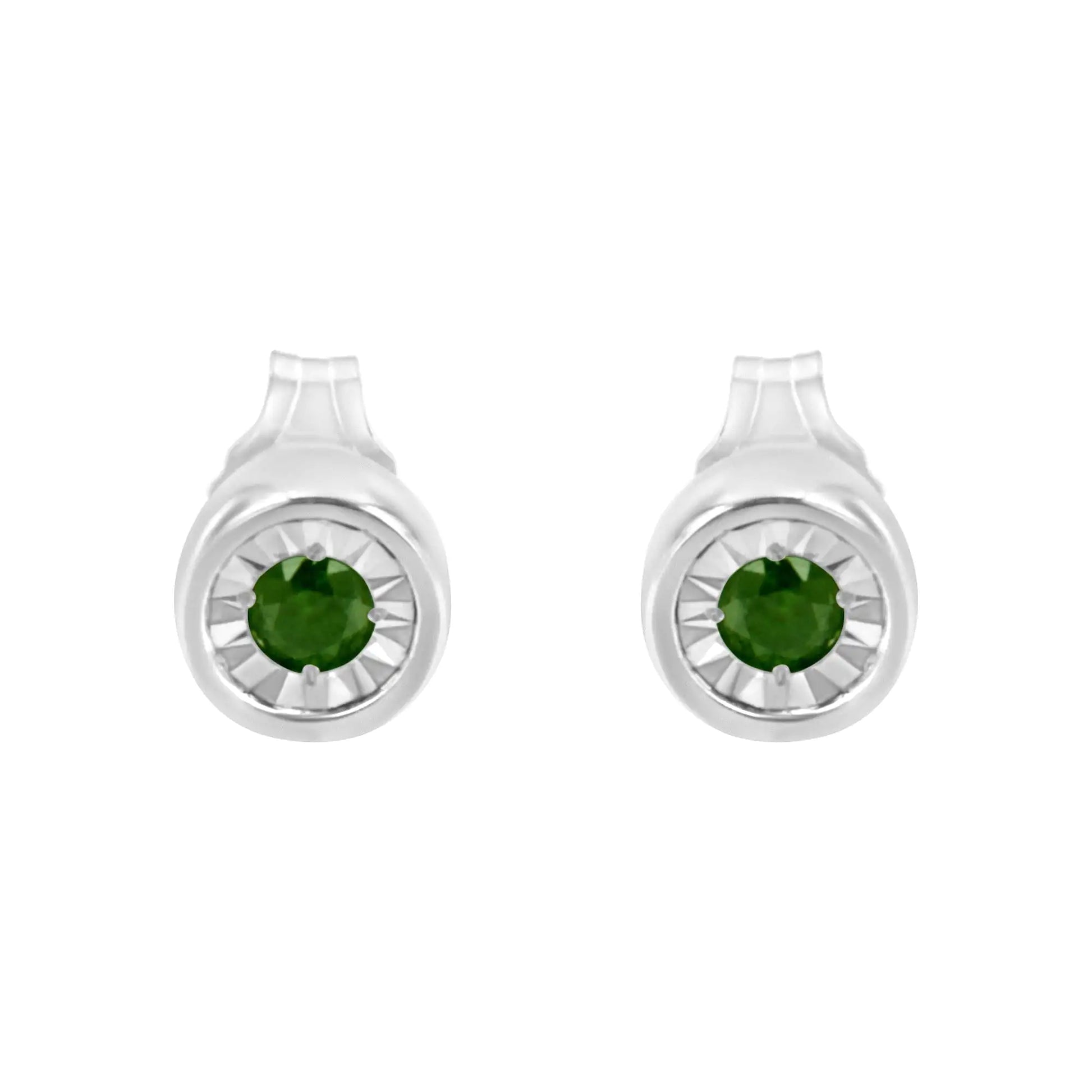 .925 Sterling Silver 1/5 Cttw Round Brilliant-Cut Green Diamond Miracle-Set Stud Earrings (Fancy Color-Enhanced, I1-I2 Clarity)
