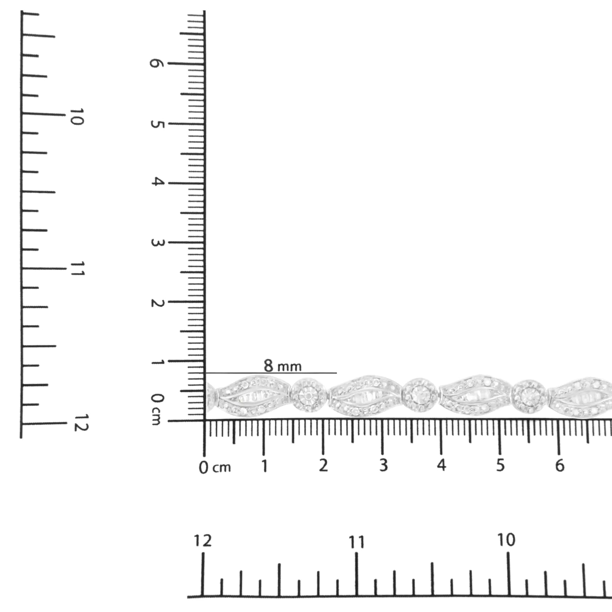 💎 The leaf-shaped link features a row of shimmering baguette-cut diamonds, framed between two silver beaded ribbons, and accented with additional round diamonds that add extra sparkle and charm. ✨