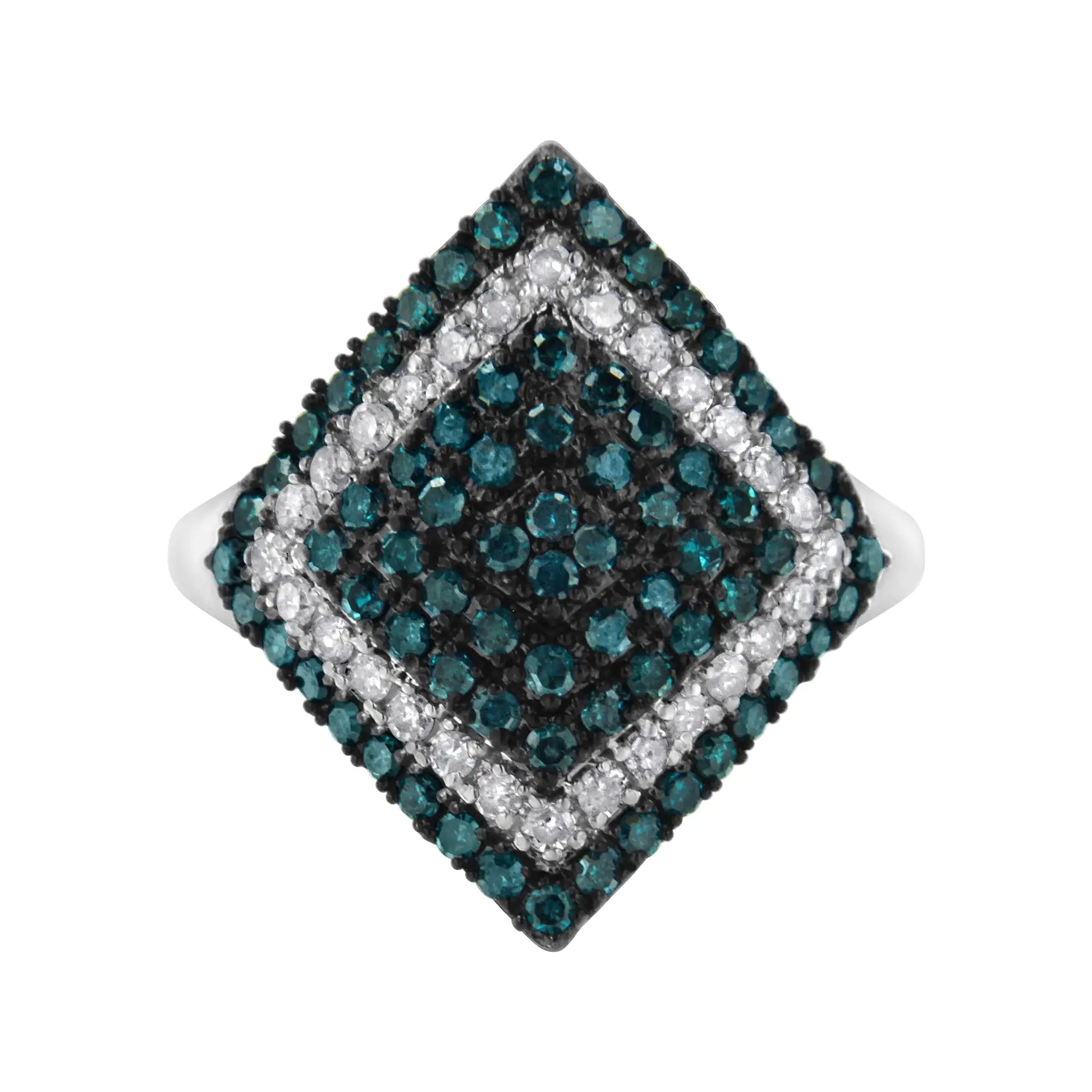 .925 Sterling Silver 1 cttw White and Treated Blue Diamond Rhombus Cocktail Ring (Blue, I3)