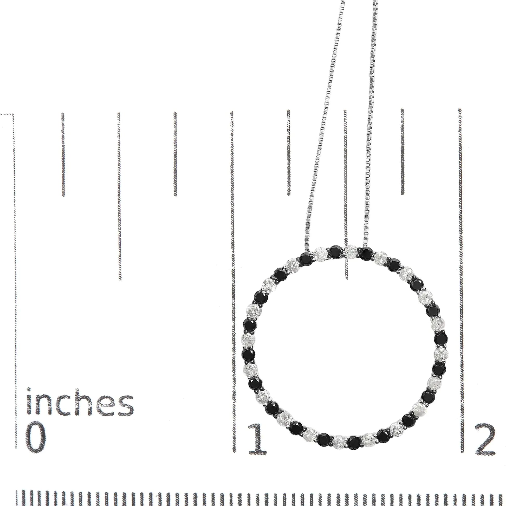 .925 Sterling Silver 2.0 Cttw Alternating Black and White Diamond Open Hoop Circle Pendant Necklace (H-I Color, I2-I3 Clarity) - 18" Inches