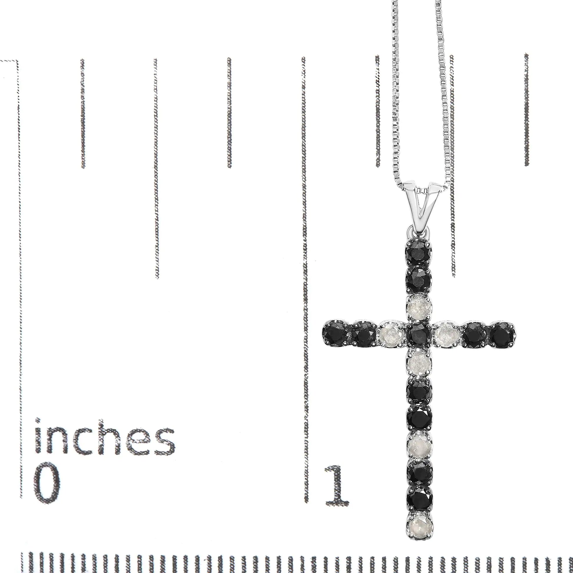 .925 Sterling Silver Cross Pendant Necklace with White & Black Diamonds 💎✝️
