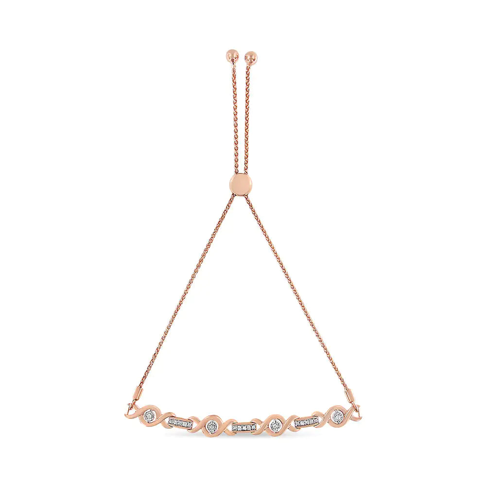 .925 Sterling Silver Channel Set Diamond Accent Twist 4”-10” Adjustable Bolo Bracelet (I-J Color, I3 Clarity)