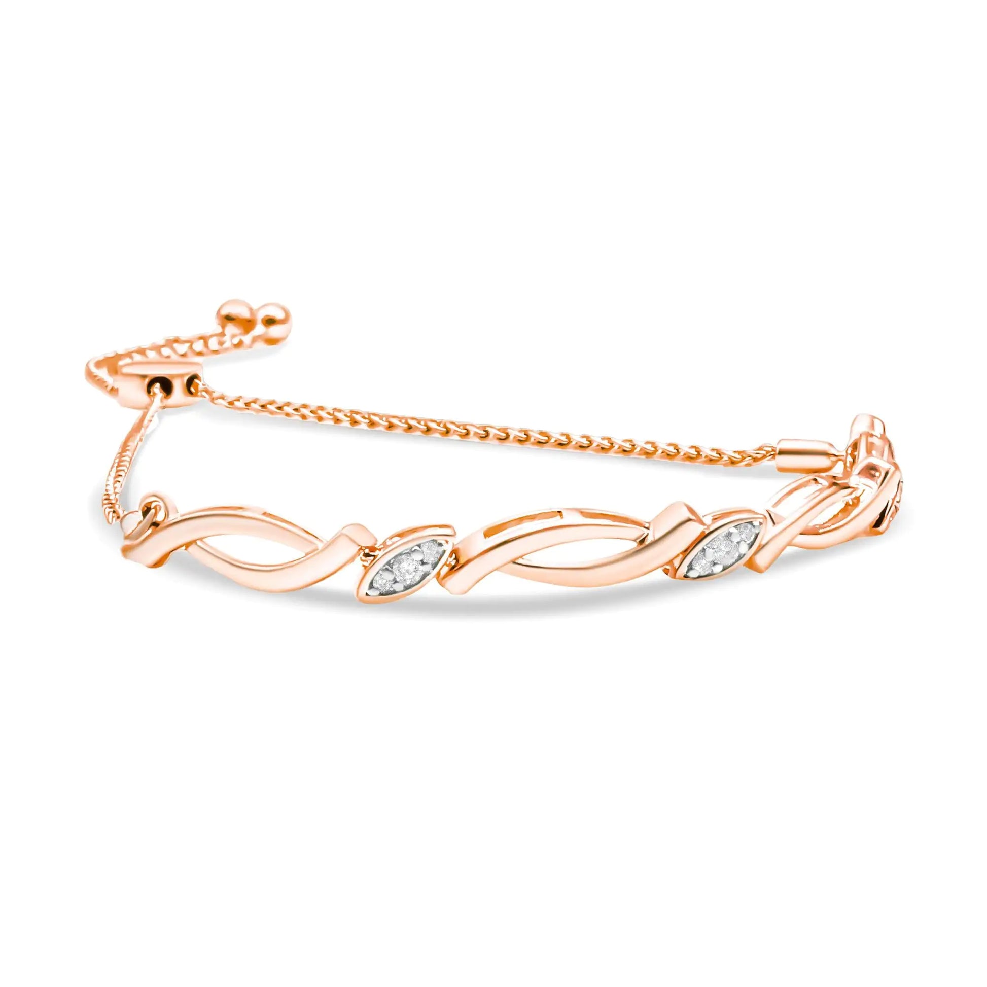 .925 Sterling Silver Diamond Accent Alternating Swirl link Bolo Bracelet (I-J Color, I2-I3 Clarity) - 6" to 9" Adjustable