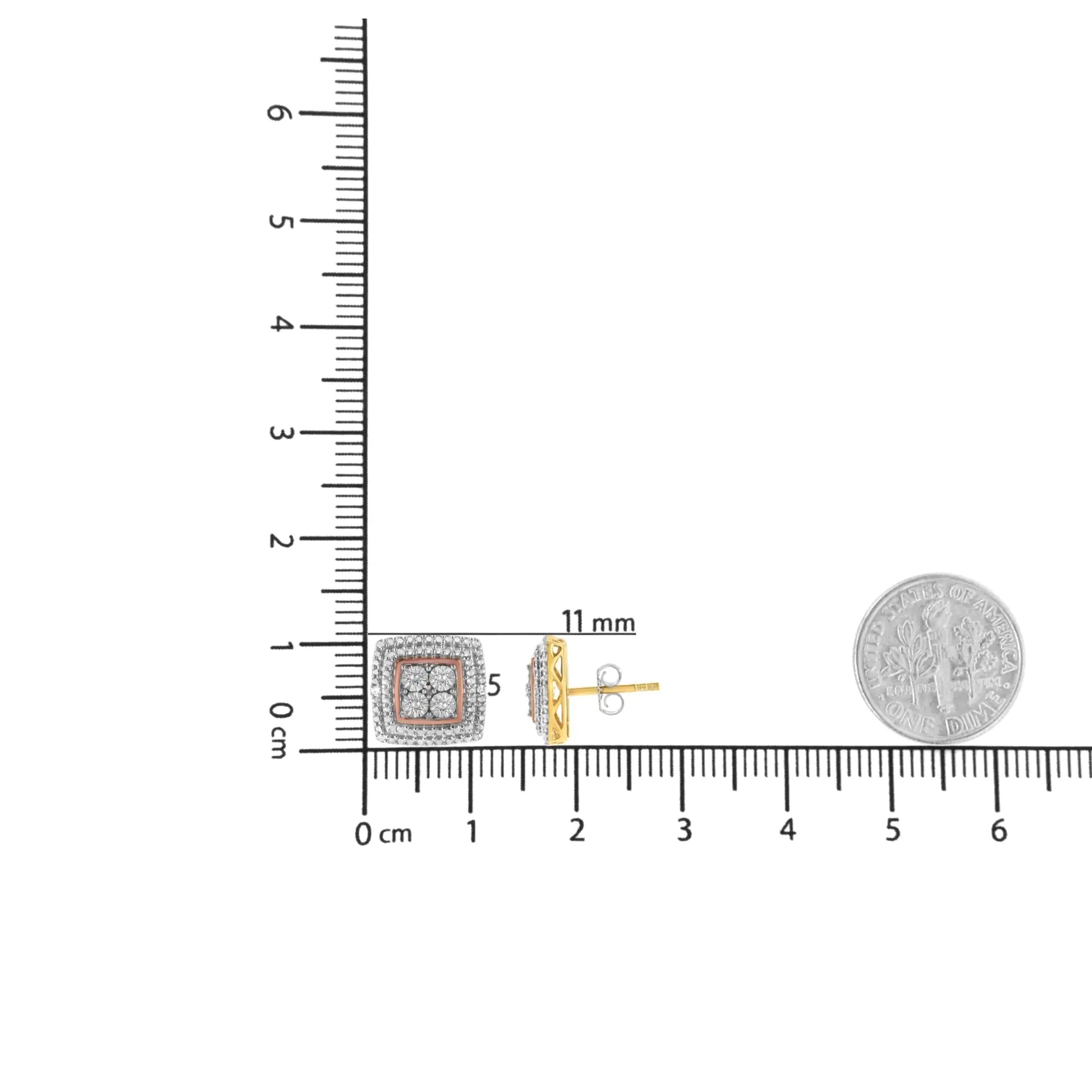 These stunning square-shaped stud earrings are made with an assortment of 10k yellow, white, and rose-gold plated sterling silver 💛🤍🌹.