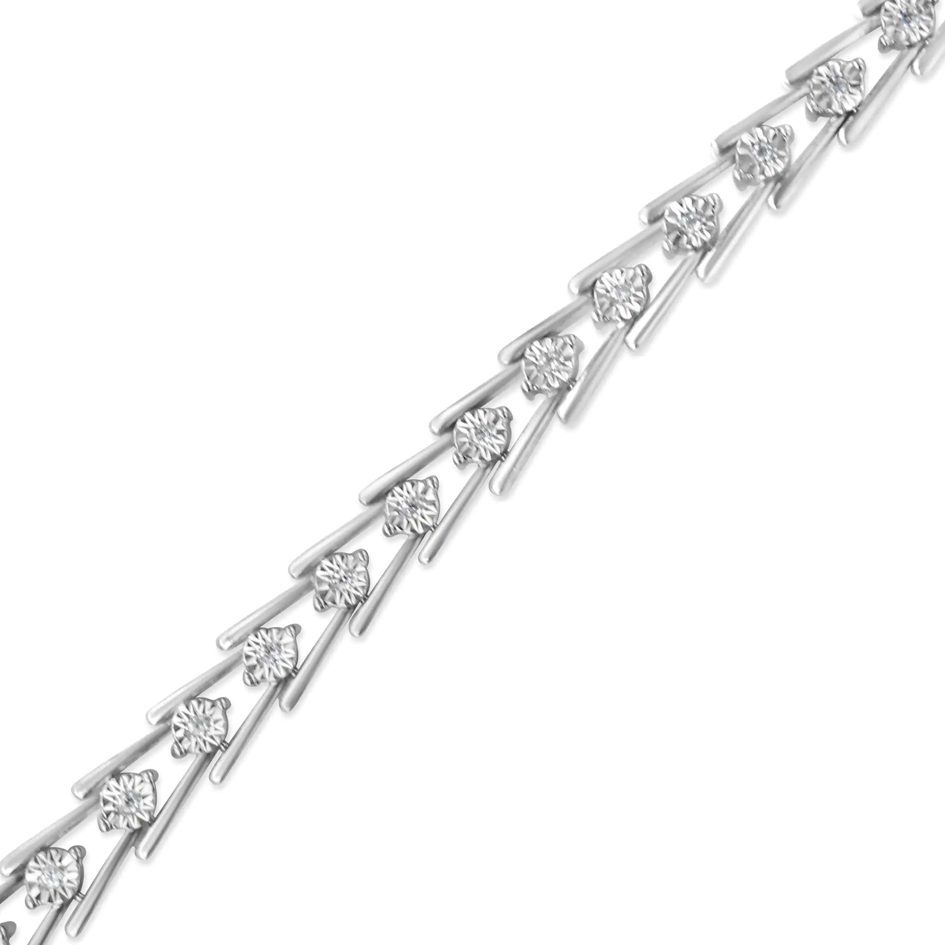 .925 Sterling Silver Diamond Miracle-Set Double Swoosh Milgrain Style Tennis Bracelet (1/2 cttw, I-J Color, I3 Clarity) - Size 7.75"